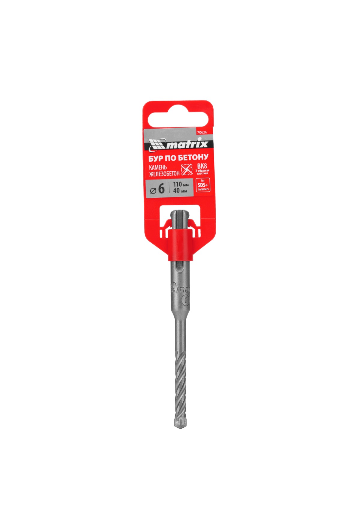 Бур по бетону, 6 x 110 мм, SDS Plus c крестовой пластиной Matrix