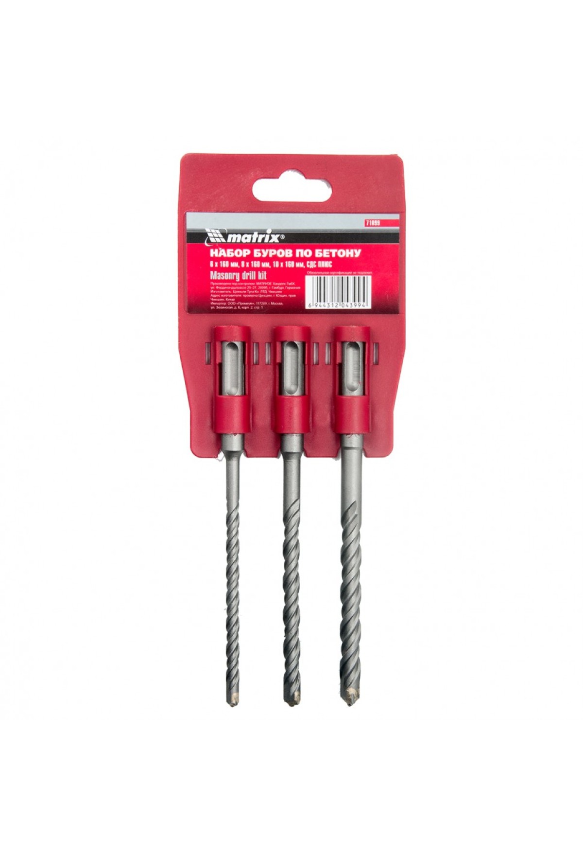 Технические характеристики Набор буров по бетону, 6 х 160, 8 х 160, 10 х 160 мм, 3 шт, на подвесной карте, SDS Plus Matrix