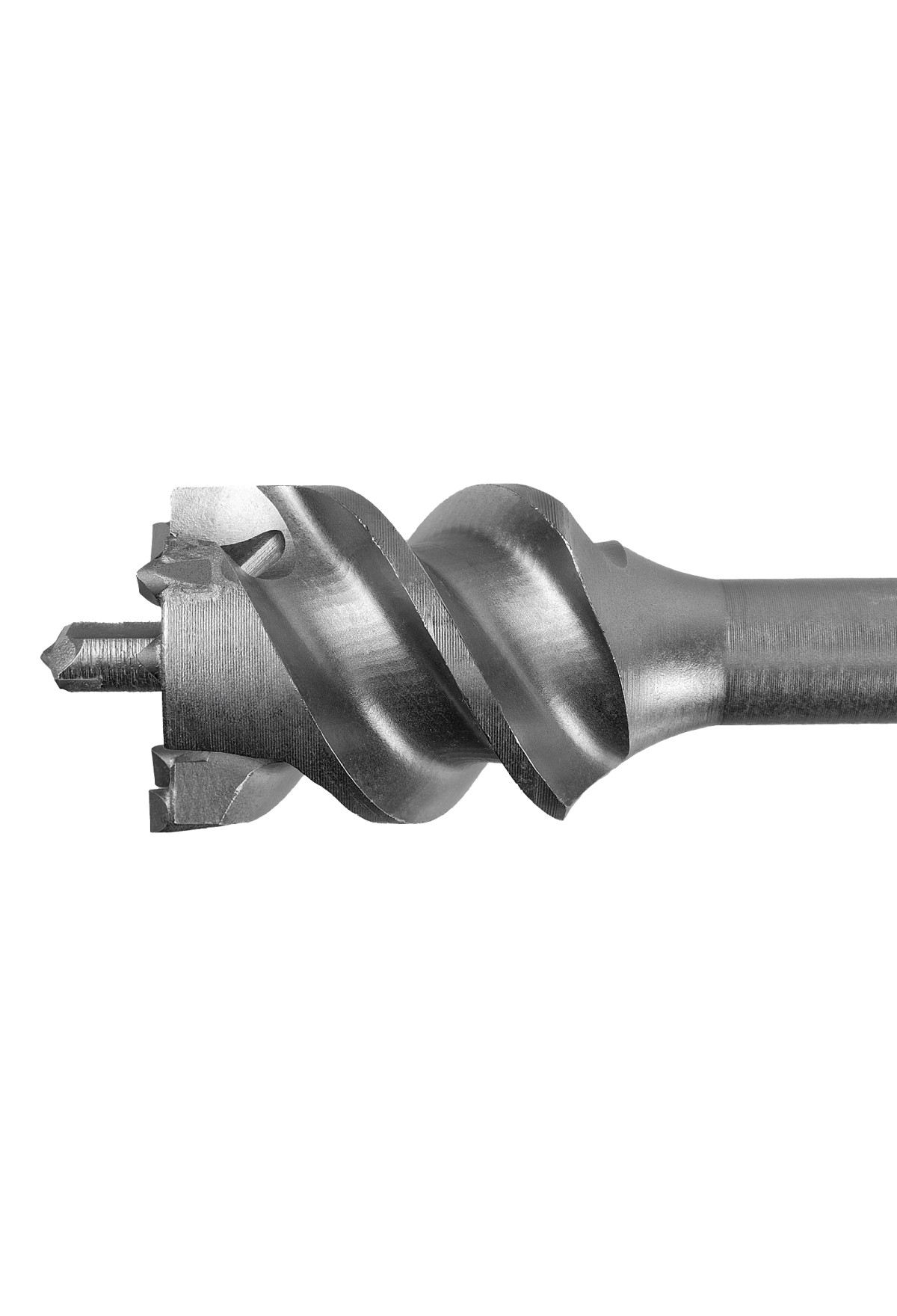 - Высокое качество сверления — цельная конструкция оснастки позволяет минимизировать радиальное и торцевое биение в процессе работы, что исключает отклонение бура от заданной оси.