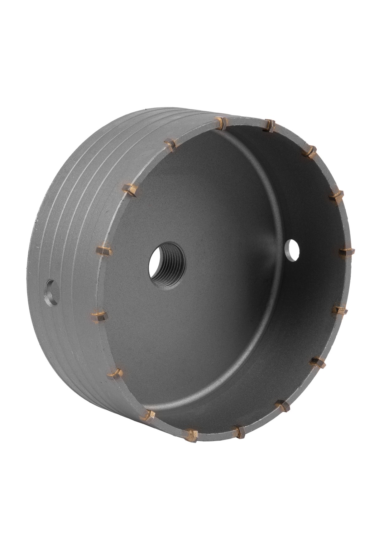 Буровая коронка Matrix 70396 с посадкой M22, диаметром 150 мм, рассчитана на сверление отверстий в бетоне, кирпиче, граните, природном и искусственном камне. Устанавливается на ударные дрели или перфораторы с патронами под хвостовик SDS-Plus или SDS-Max. Коронка позволяет получить большие отверстия, поэтому пригодится для монтажа розеток, выключателей и прокладки труб.