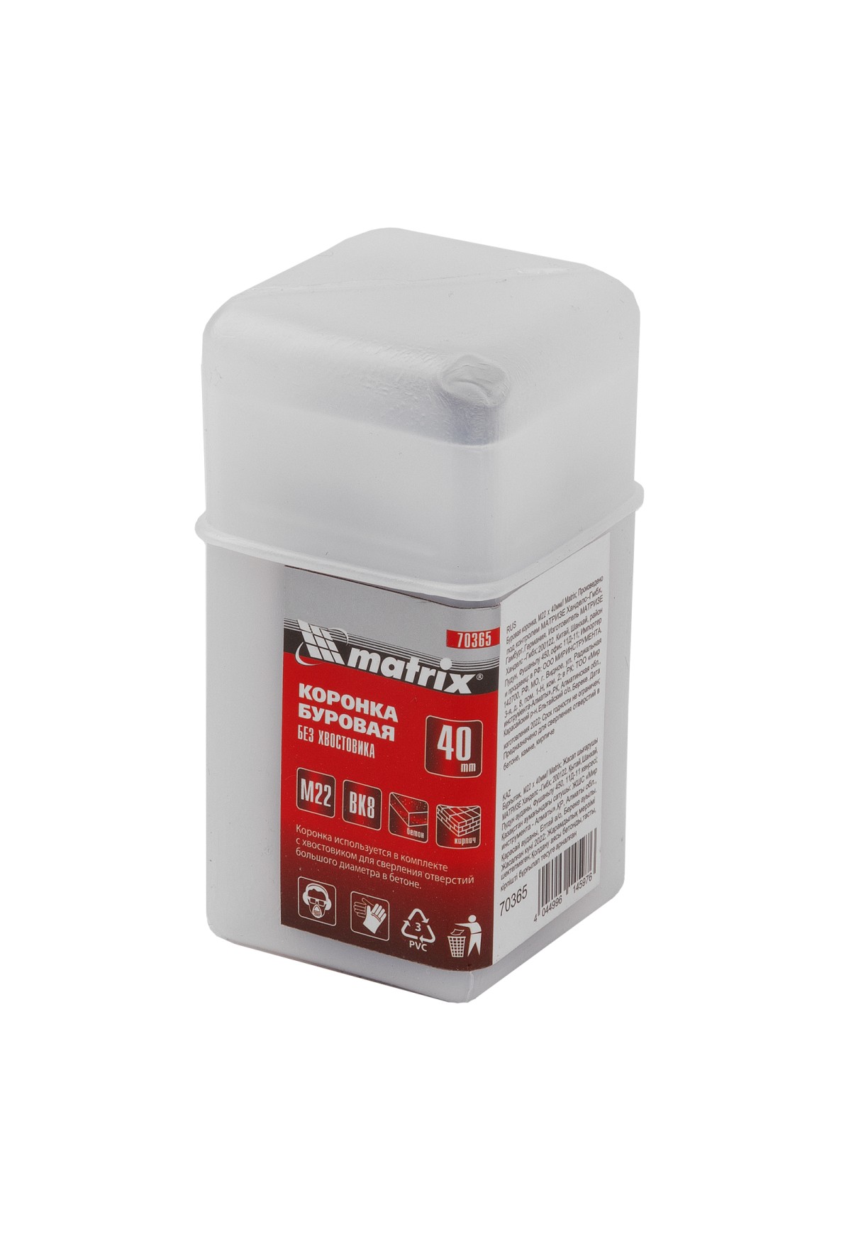 Технические характеристики Буровая коронка, M22 х 40 мм Matrix