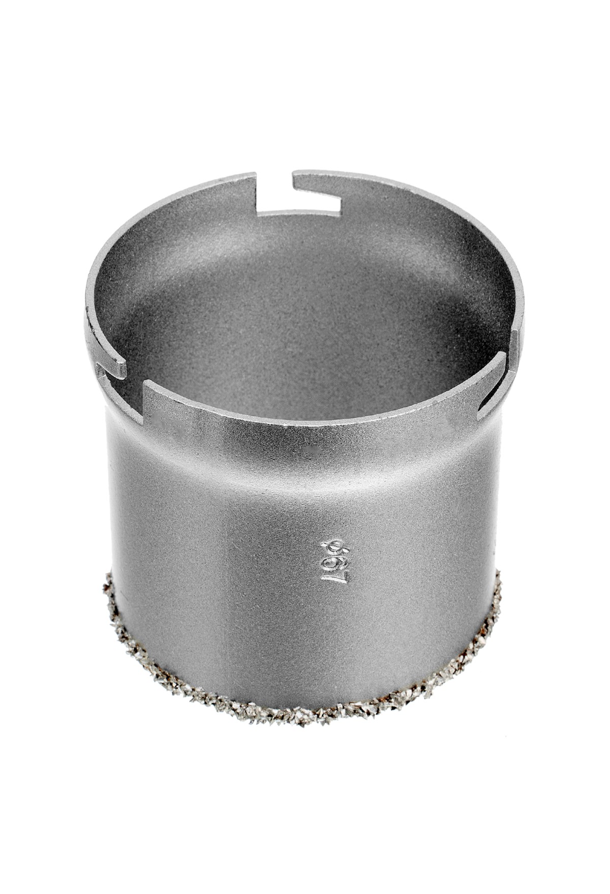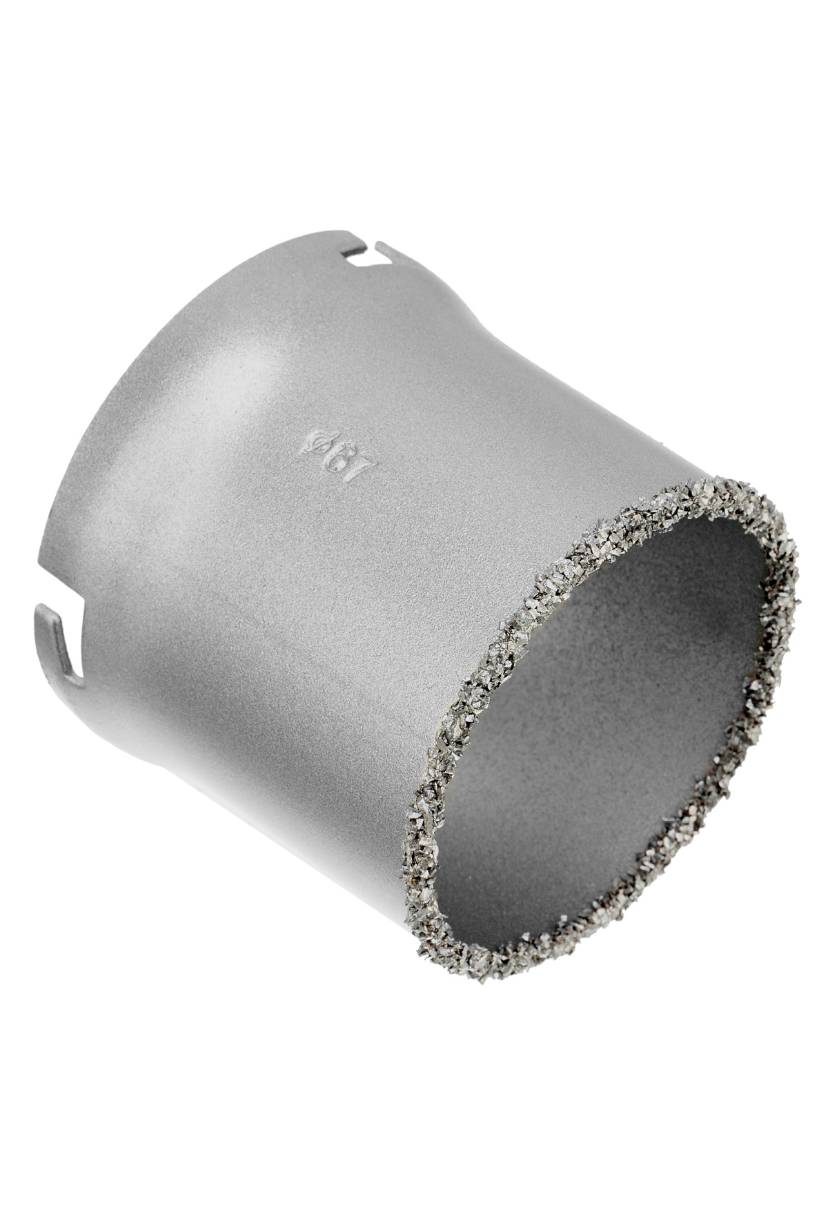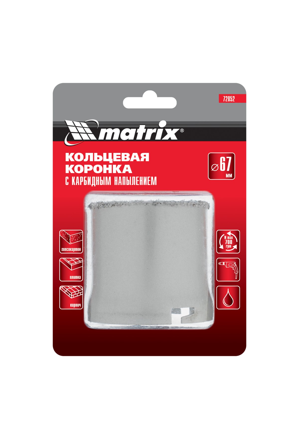 Кольцевая коронка с карбидным напылением Matrix 72852 диаметром 67 мм — сменный режущий элемент для дрелей и перфораторов. Предназначена для сверления отверстий в керамической плитке, ячеистом бетоне, пенобетоне, газосиликате, кирпиче. Пригодится для монтажа проводки в доме. Используется совместно с державкой Matrix 72860 и центрирующим сверлом Matrix 72862 (не входят в комплект поставки).
