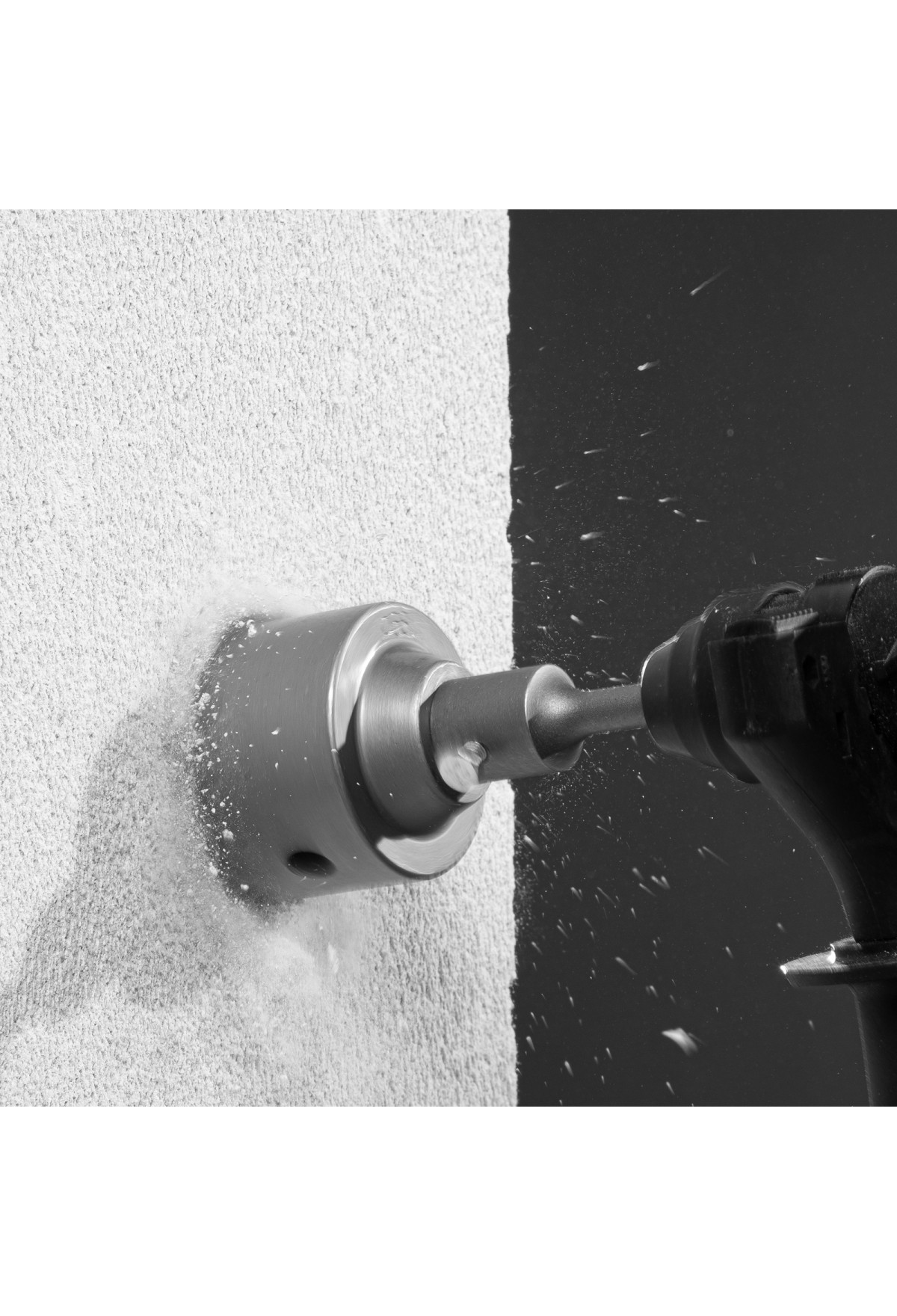 - Ровные отверстия — гладкий корпус коронки уменьшает трение, а центрирующее сверло предотвращает смещение коронки.