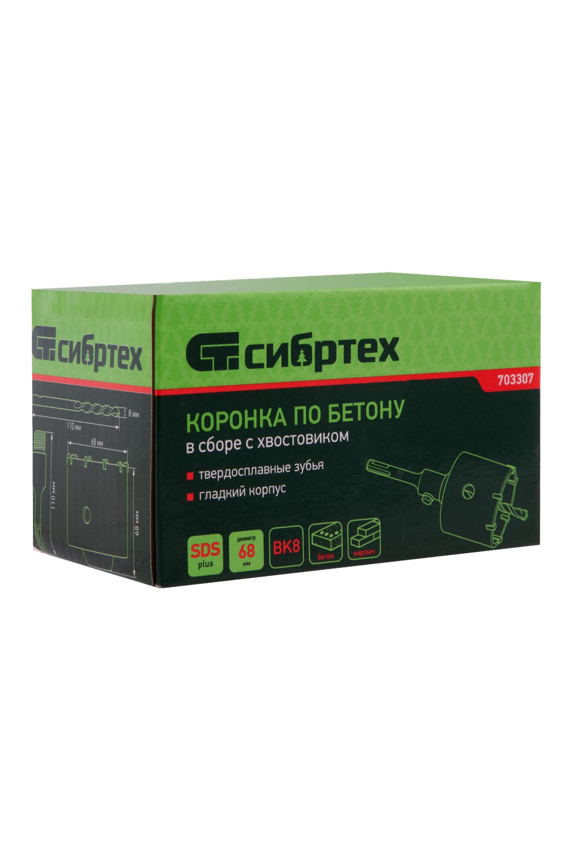 Коронка по бетону М22 х 68 мм Сибртех 703307 в сборе с хвостовиком устанавливается на ударную дрель или перфоратор с патроном SDS PLUS. Позволяет получить отверстия в бетоне, кирпиче, граните, камне. Коронка пригодится при установке розеток и выключателей.