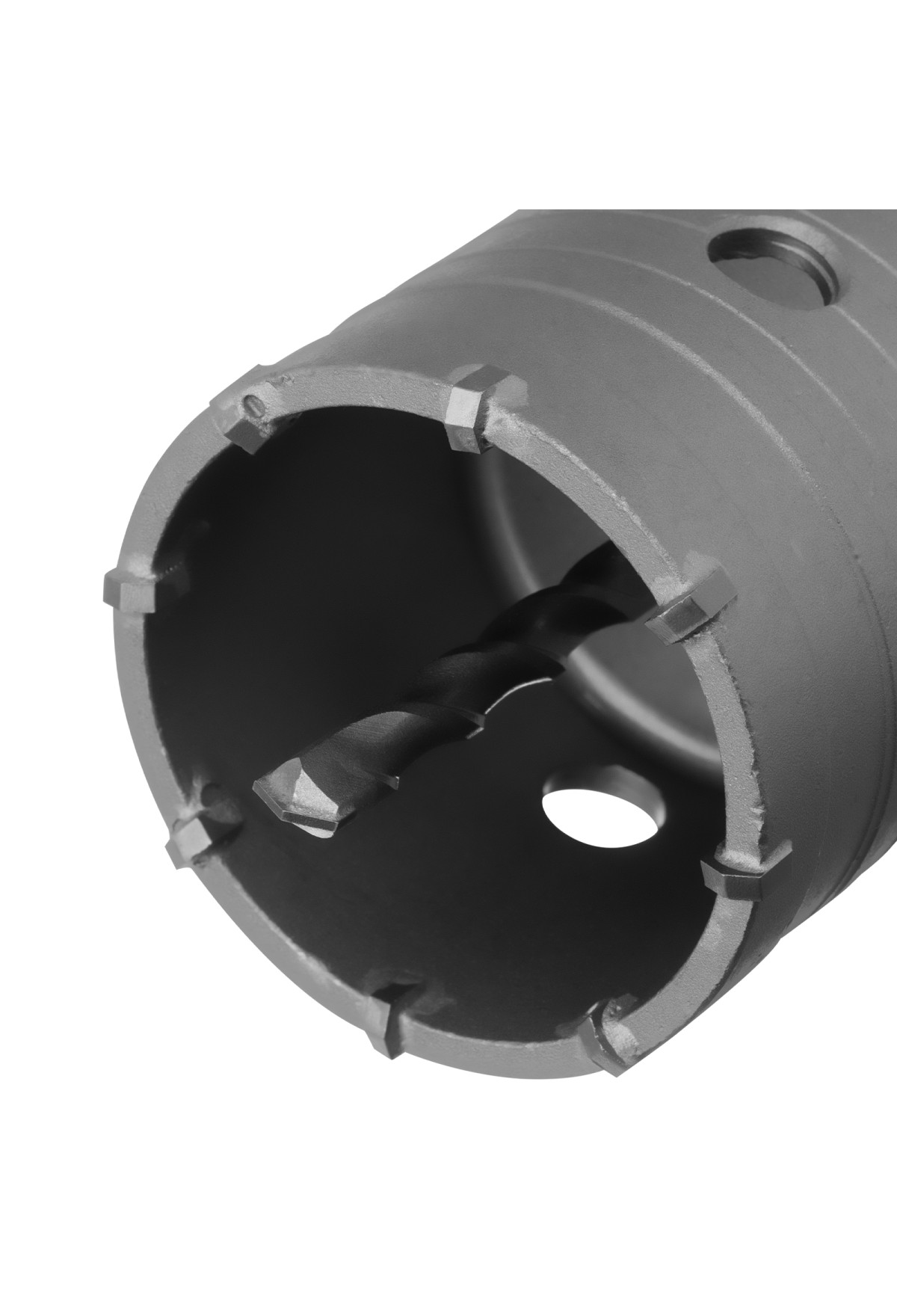 - Снижение нагрузки на перфоратор — спиральная канавка на внешней стороне коронки обеспечивает эффективный отвод шлама.