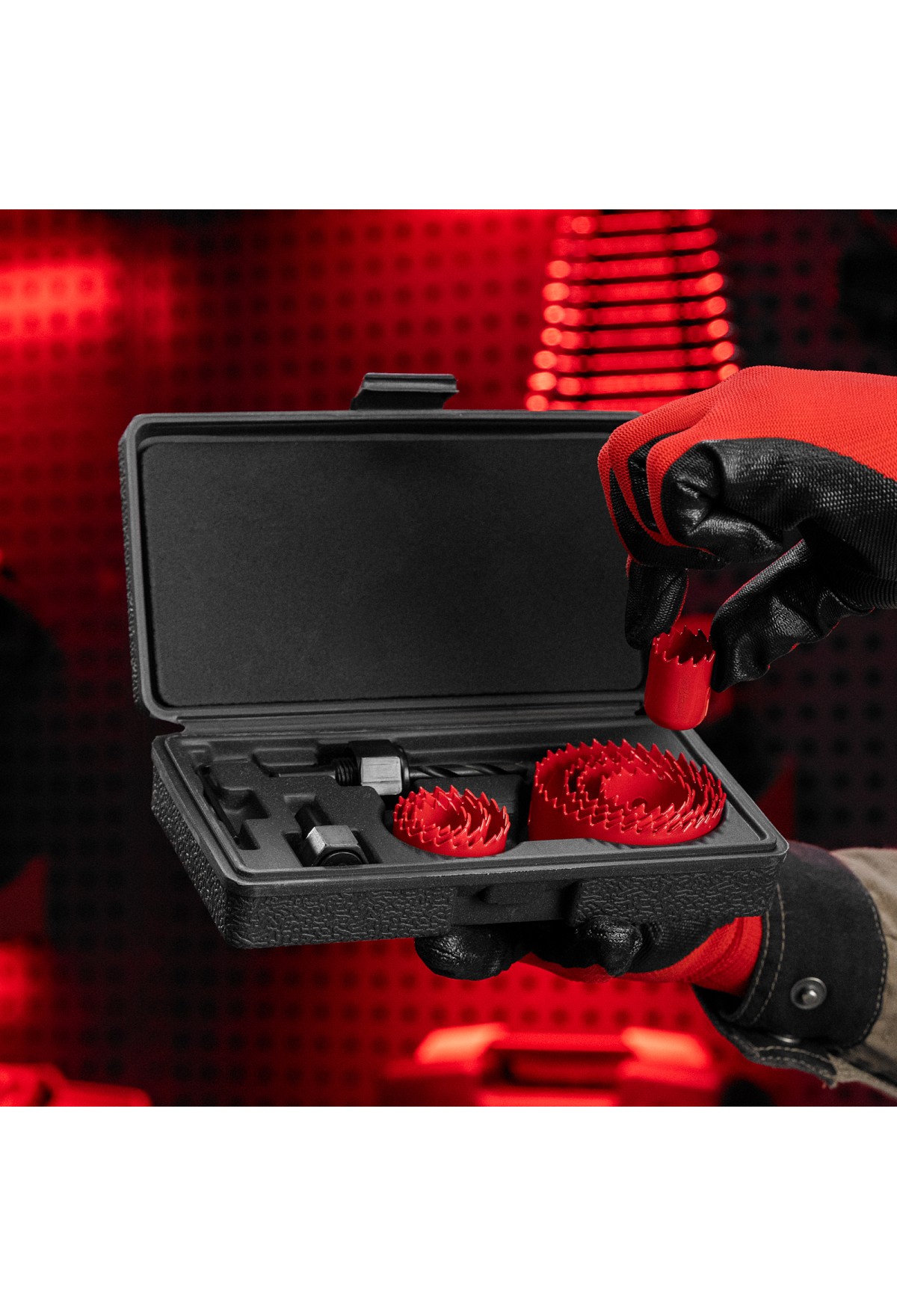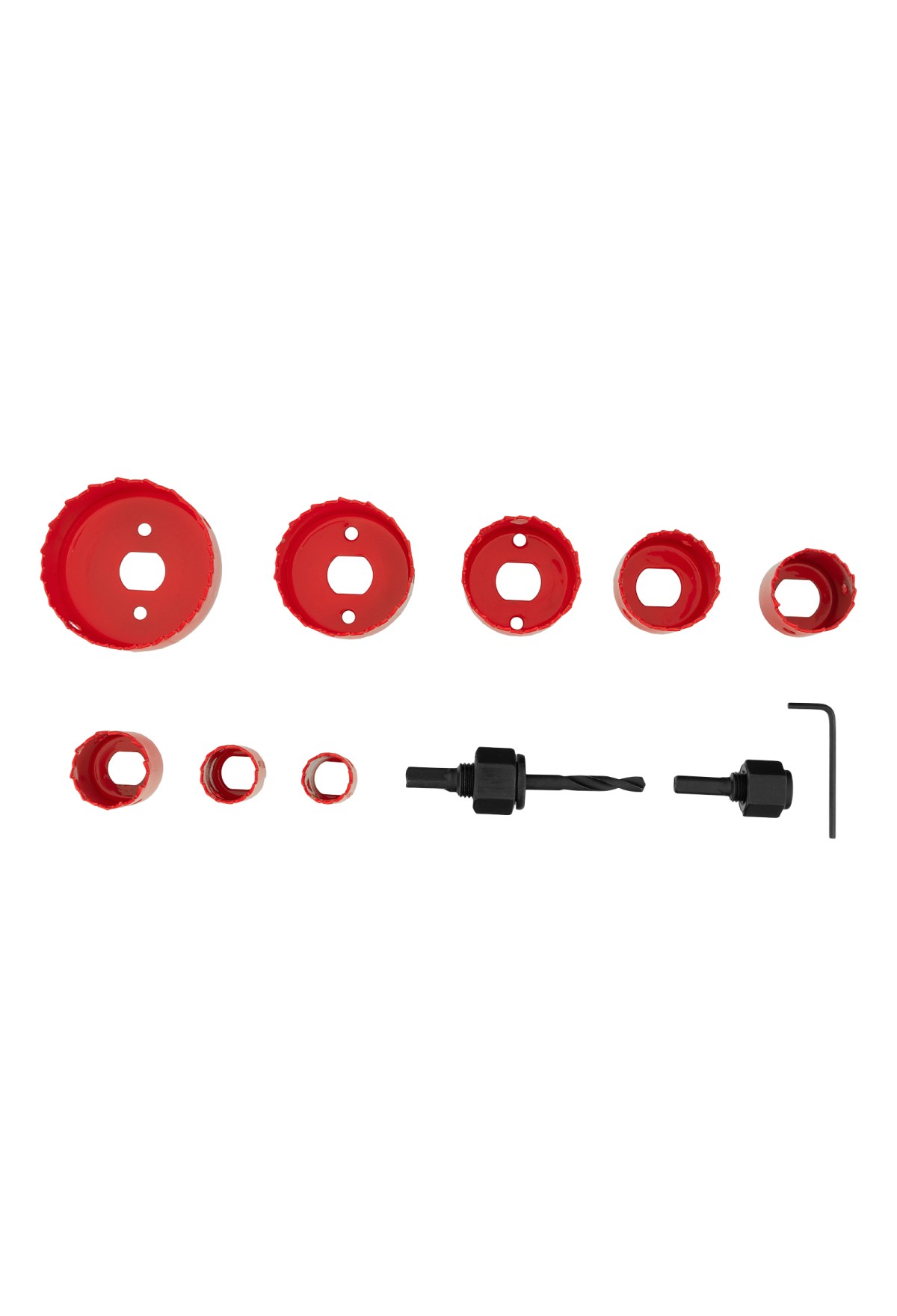 Набор кольцевых пил по дереву Matrix 70473 состоит из 11 предметов и предназначен для вырезания круглых отверстий диаметром 19-64 мм и глубиной до 27 мм. Входящие в комплект коронки подходят для работы по дереву, фанере, пластику, ламинату, гипсокартону, ДСП. Позволяют подготовить поверхность к установке розеток, светильников, выключателей, а также прокладке труб. Коронки устанавливают на электродрель. В комплект поставки входит специальная проставка для защиты пилы от проворачивания. Набор пригодится во время ремонта и будет полезен в быту.