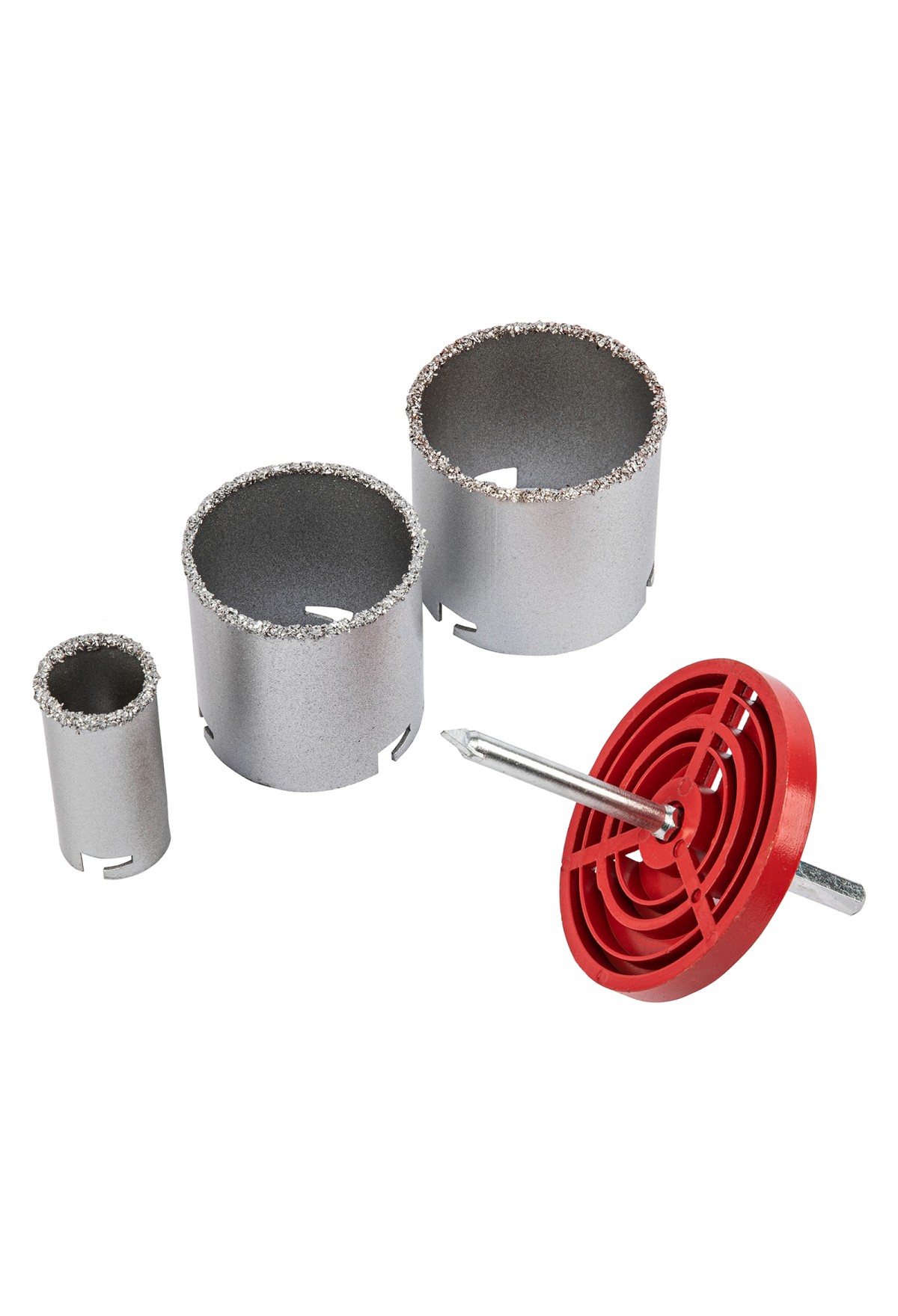 | Комплектация | Центровочное сверло - 1 штДержавка - 1 штПрижимной винт - 1 штКольцевая коронка D33, D67, D73 - 3 шт |