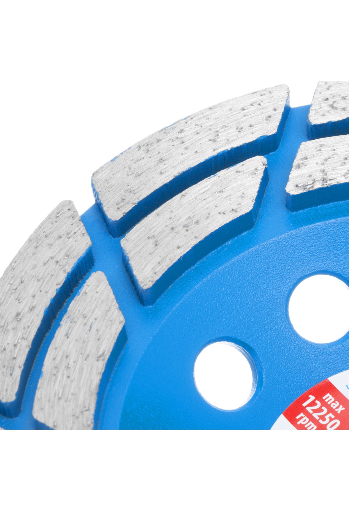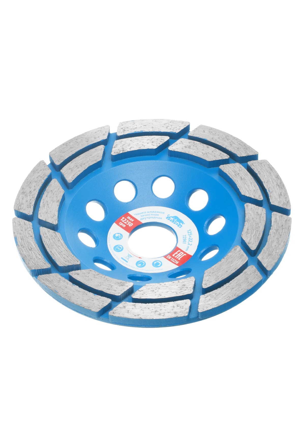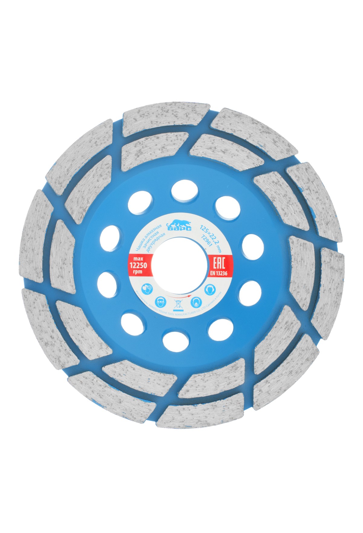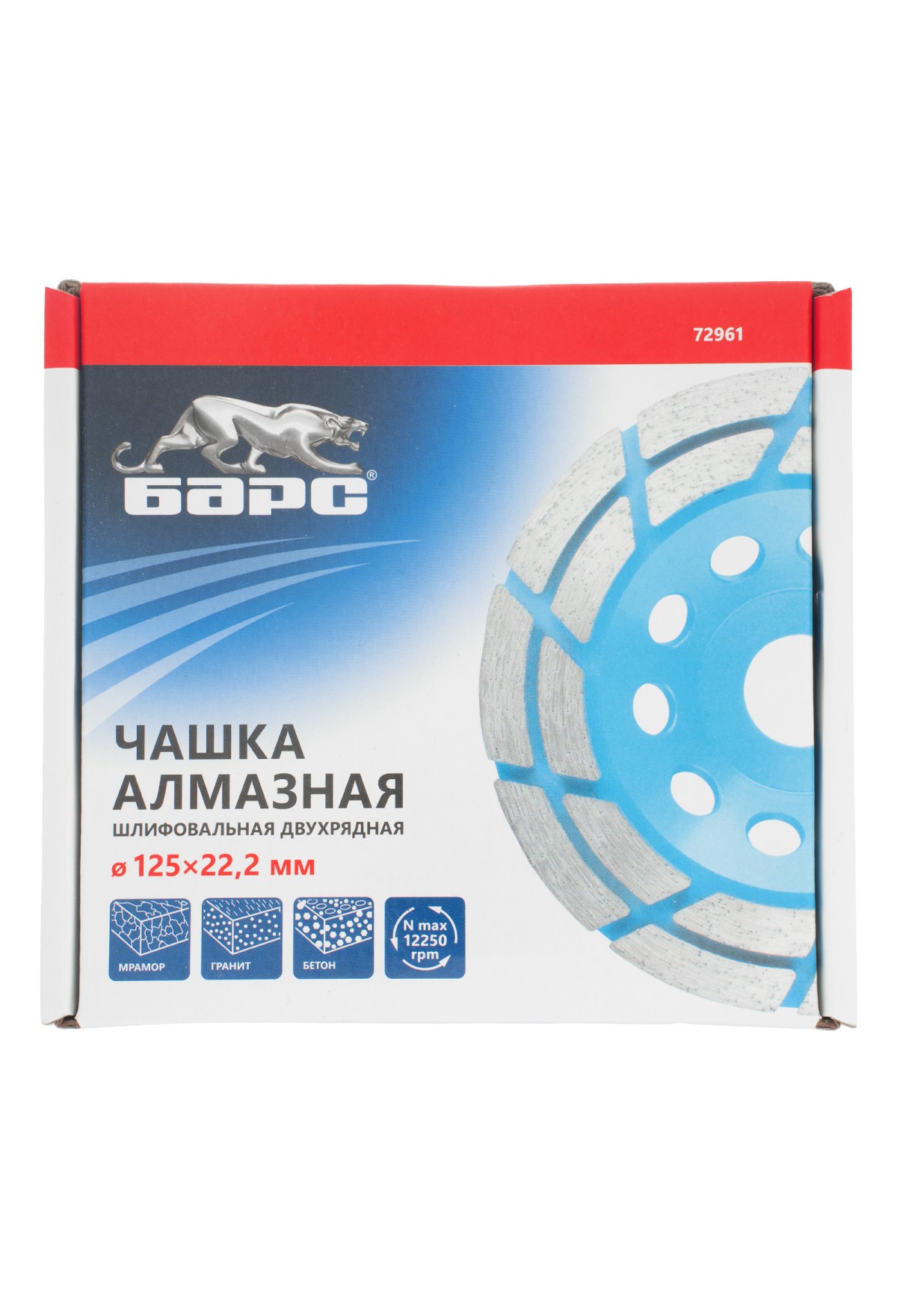 Двухрядная алмазная зачистная чашка Барс 72961 диаметром 125 мм, с посадочным отверстием 22,2 мм, предназначена для установки на вал углошлифовальной машины. Используется для черновой обработки бетонных, каменных, кирпичных, гранитных и мраморных поверхностей. Благодаря двухрядному профилю снимает толстый слой материала, устраняет наплывы, сколы, выравнивает стыки. Оптимально подобранная связка обеспечивает эффективную обработку указанных материалов. Насадка рекомендована для профессионального применения.
