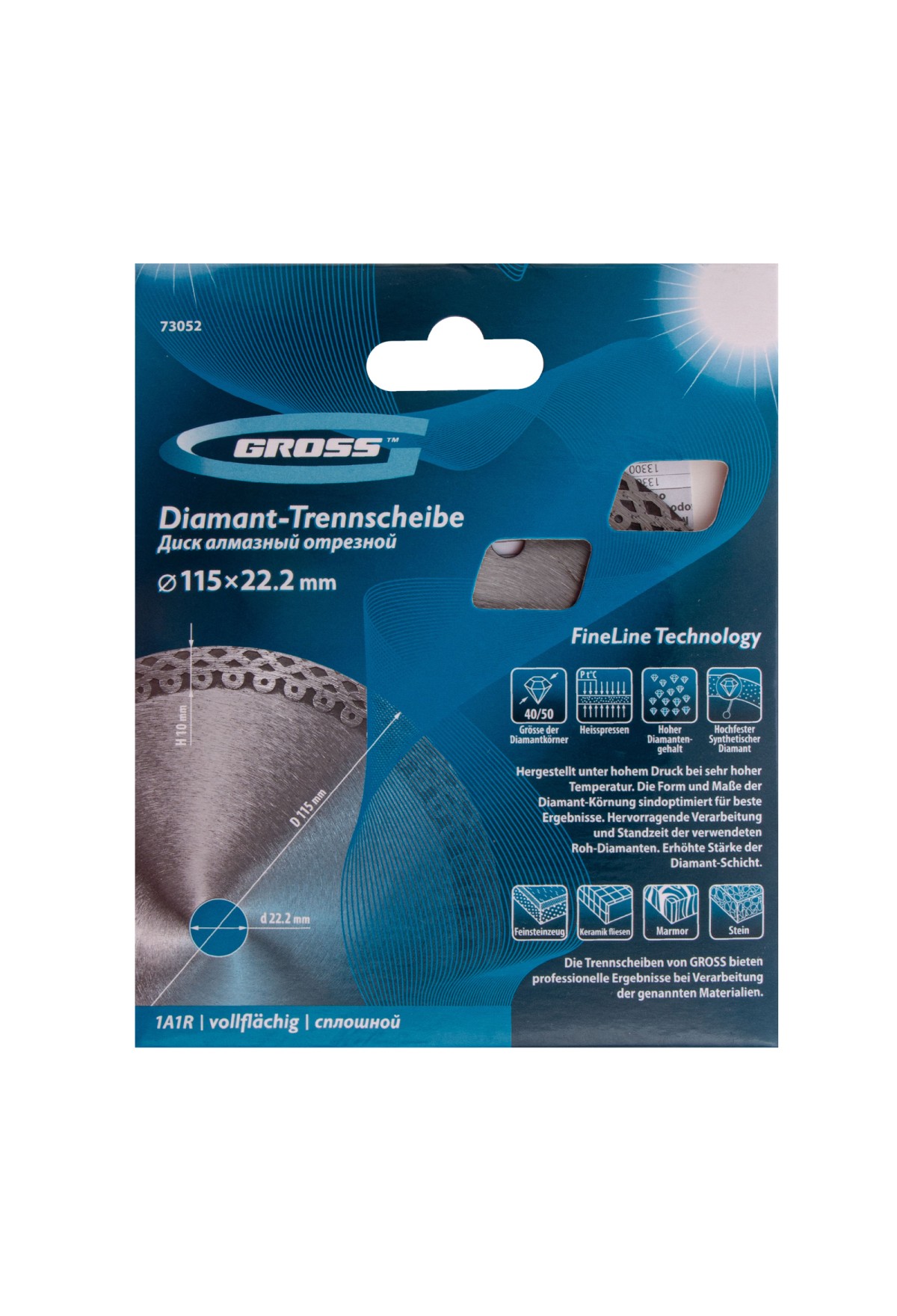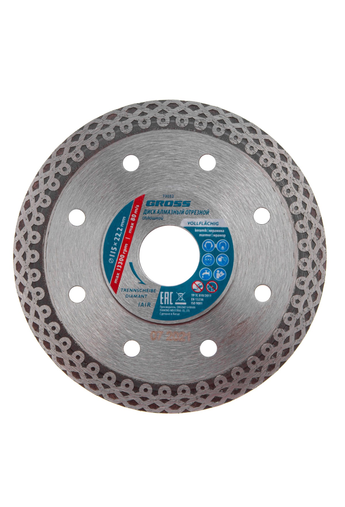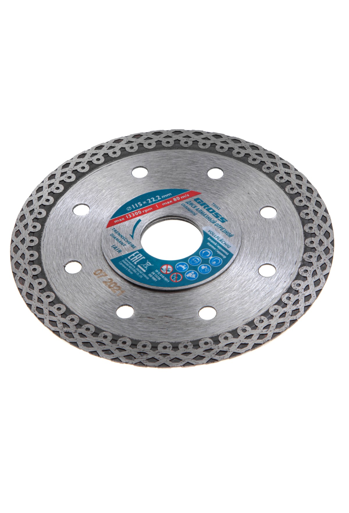 Технические характеристики Диск алмазный, 115 х 22.2 мм, тонкий, сплошной (Jaguar), мокрая резка Gross