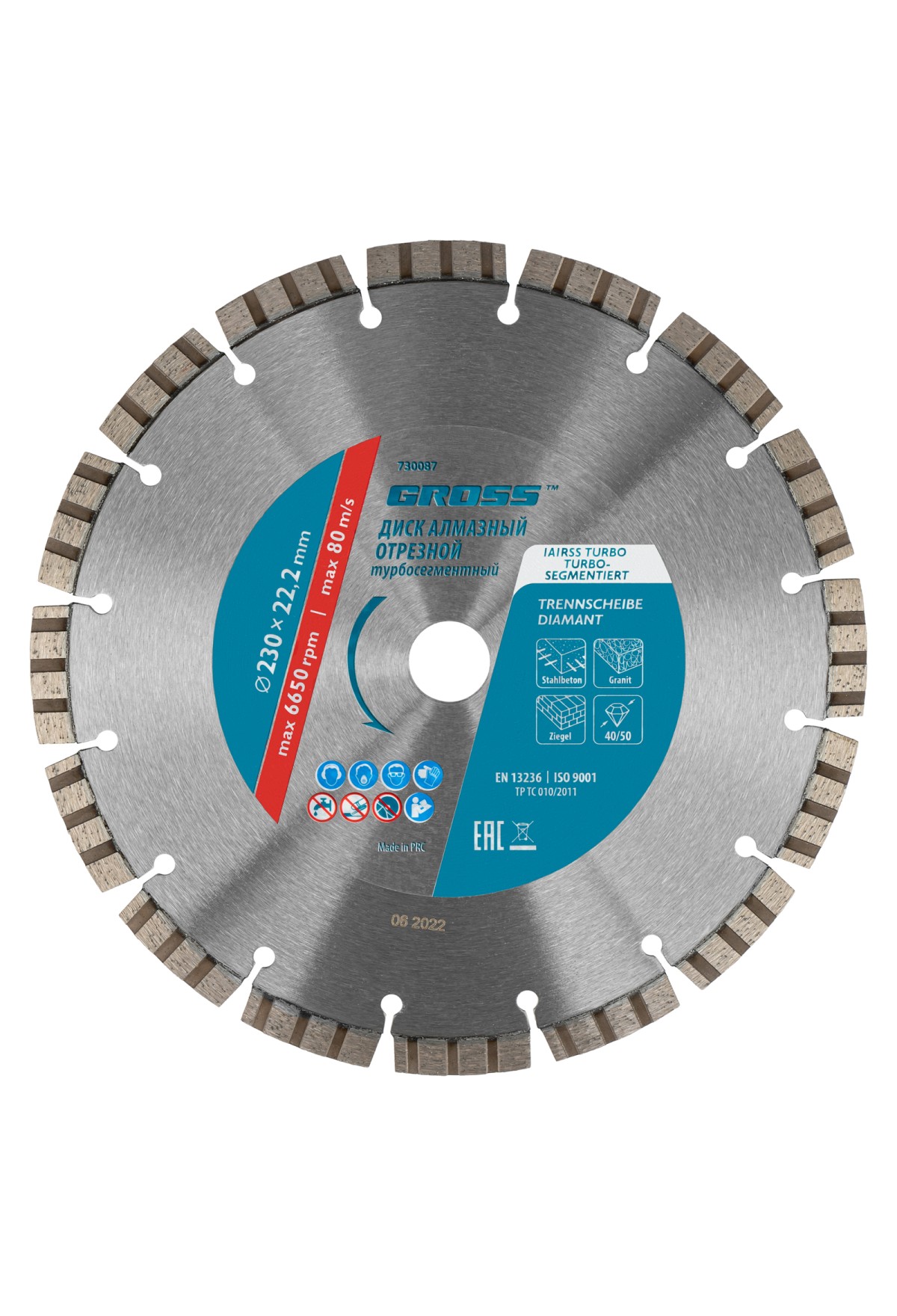 - Надежная фиксация алмазного слоя — лазерная приварка сегментов обеспечивает диску высокую стойкость к нагрузкам.