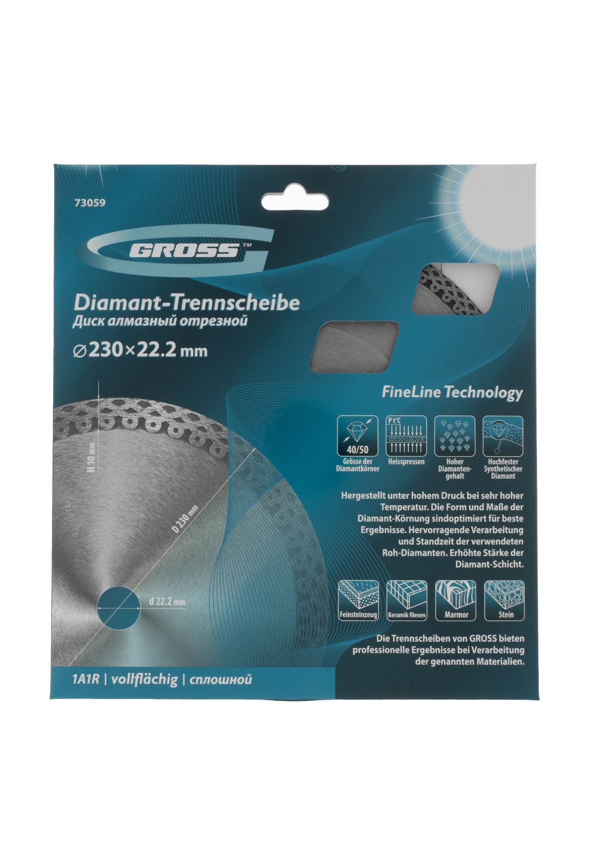 Технические характеристики Диск алмазный, 230 х 22.2 мм, тонкий, сплошной (Jaguar), мокрая резка Gross