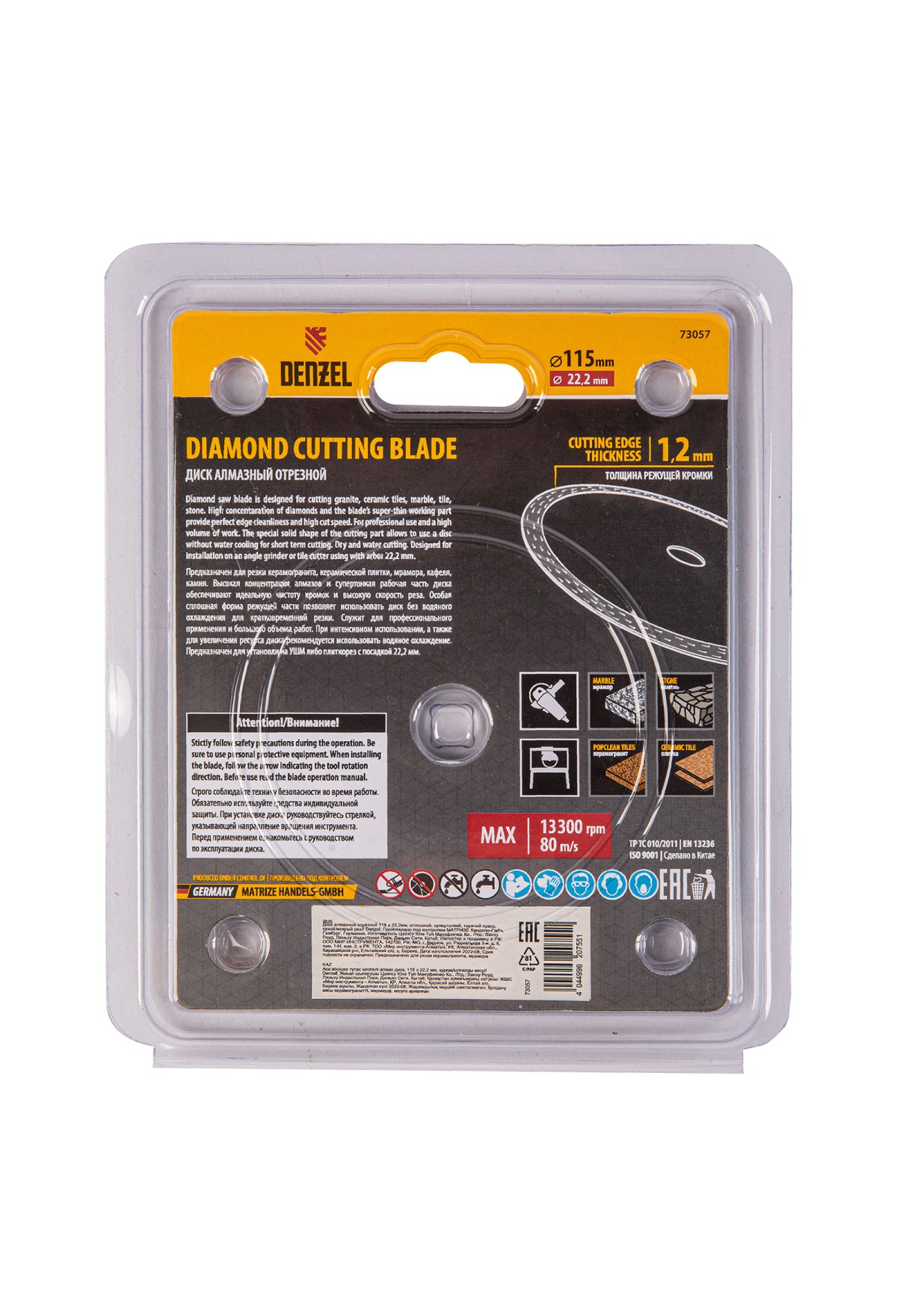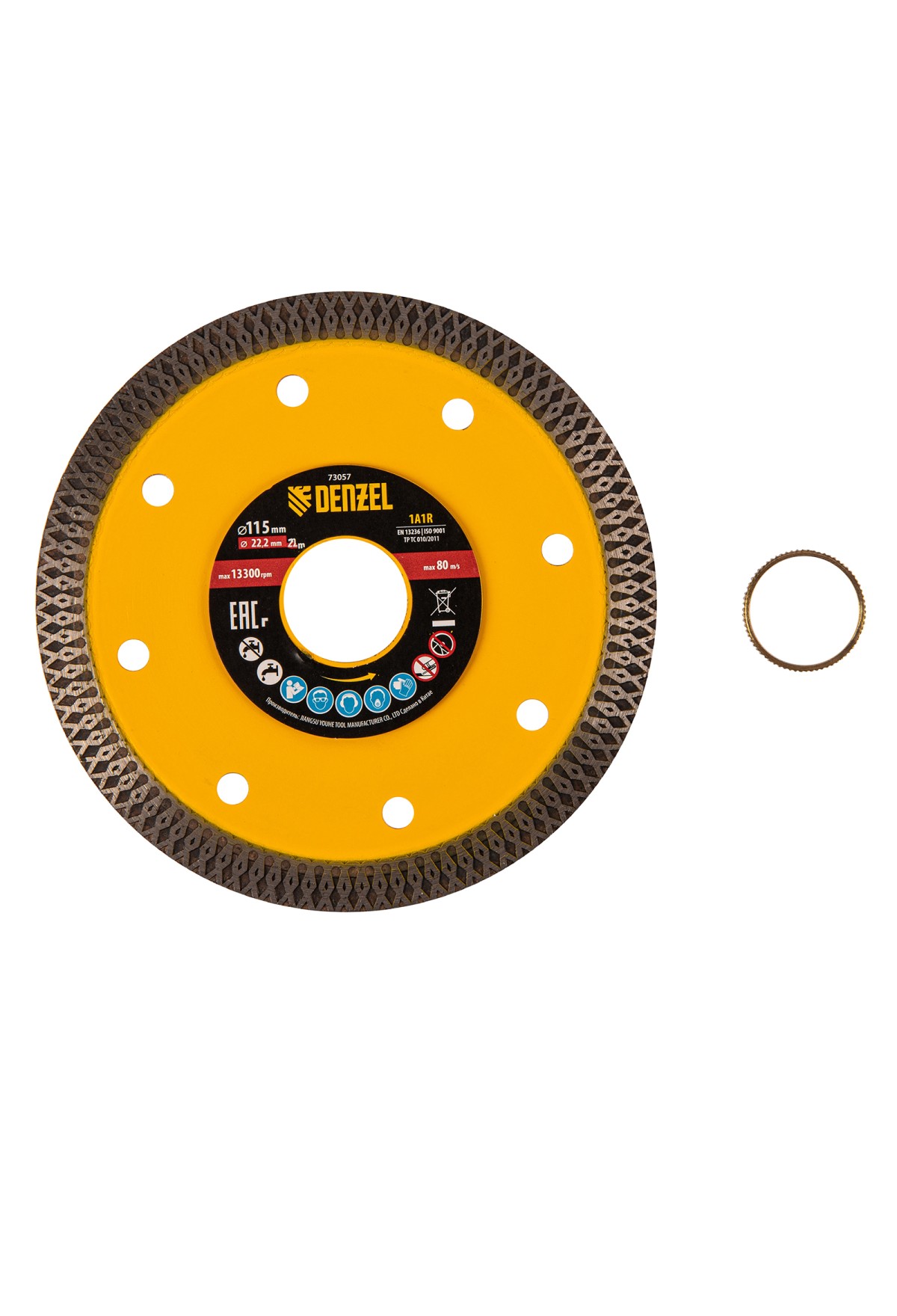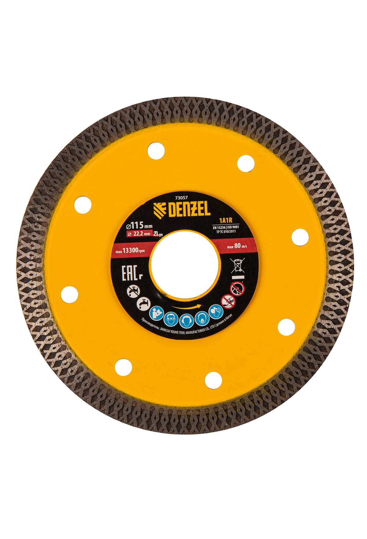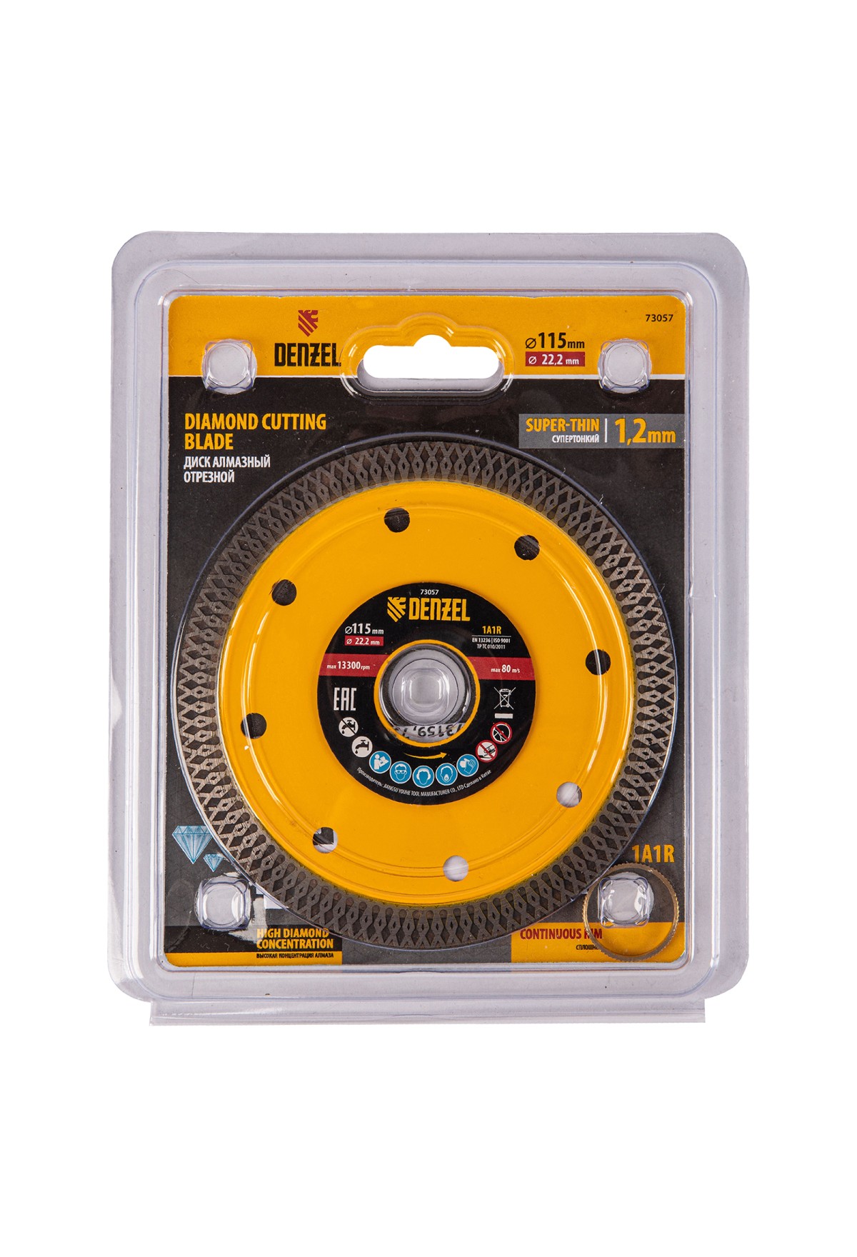 Технические характеристики Диск алмазный отрезной 115 х 22,2мм, сплошной, супертонкий, горячий пресс, сухой/мокрый рез// Denzel