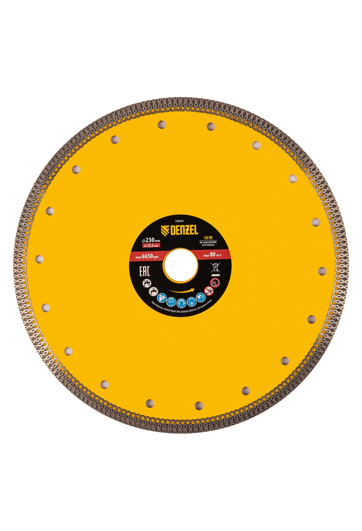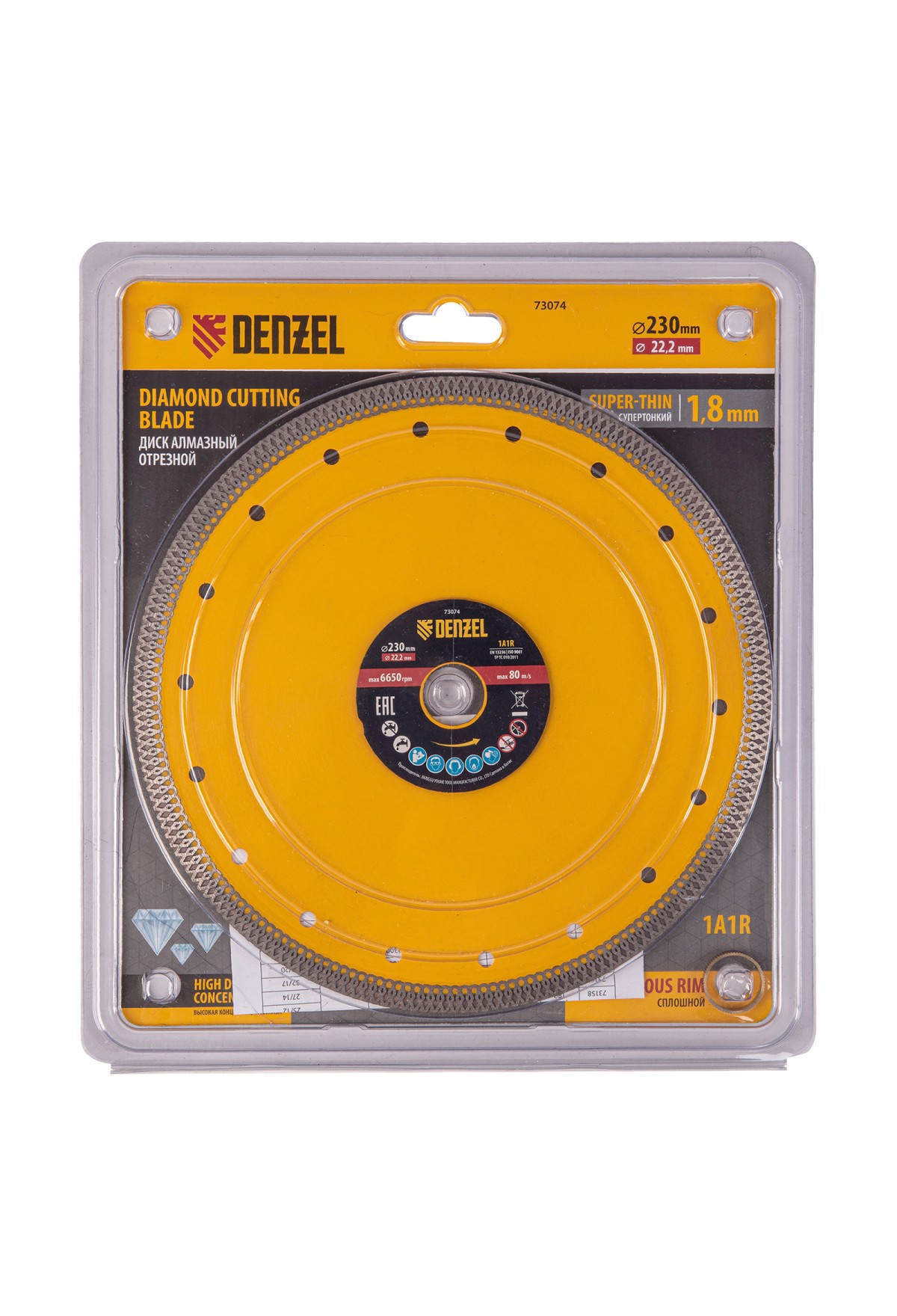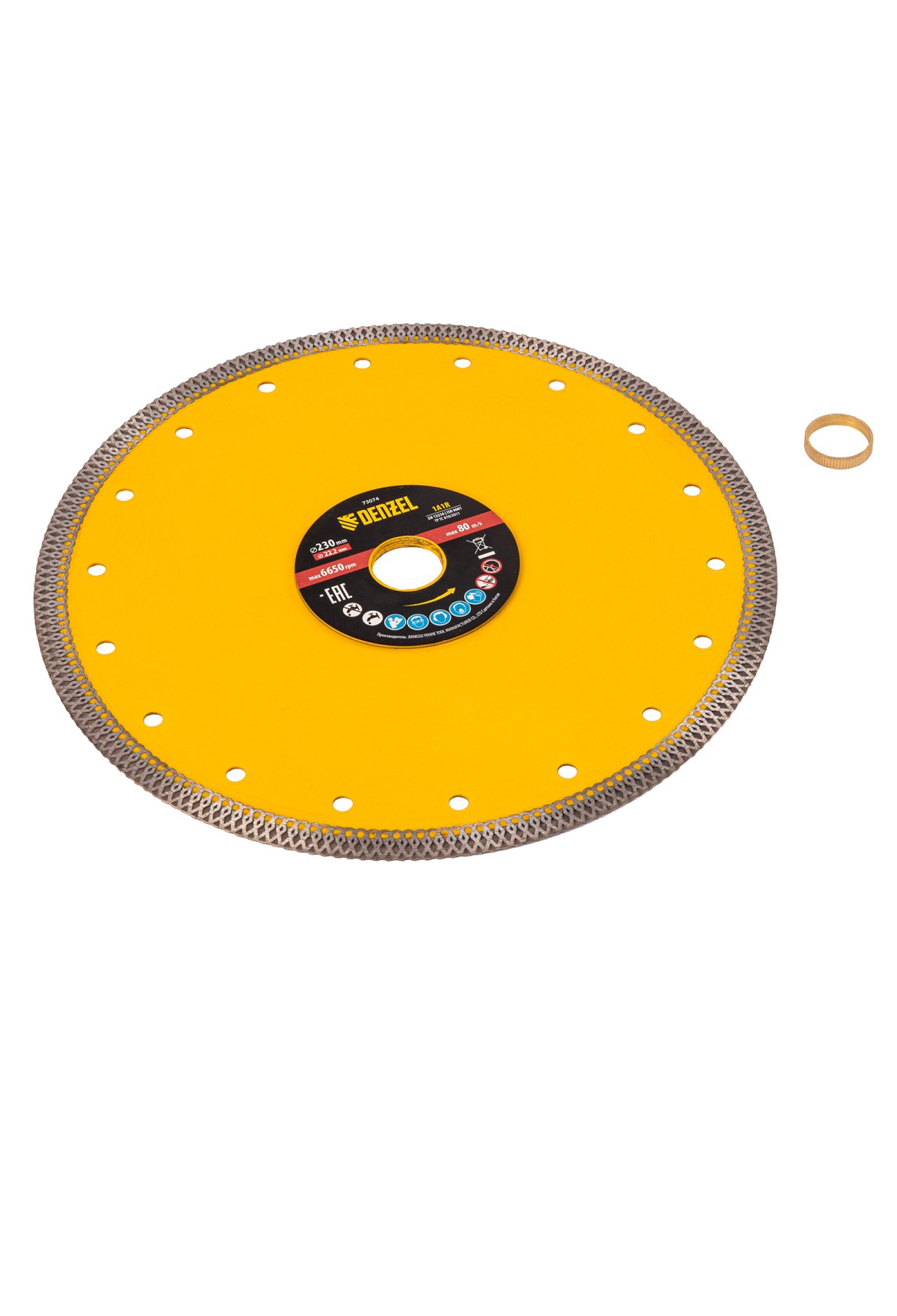 Технические характеристики Диск алмазный отрезной 230 х 22,2мм, сплошной, супертонкий, горячий пресс, сухой/мокрый рез// Denzel