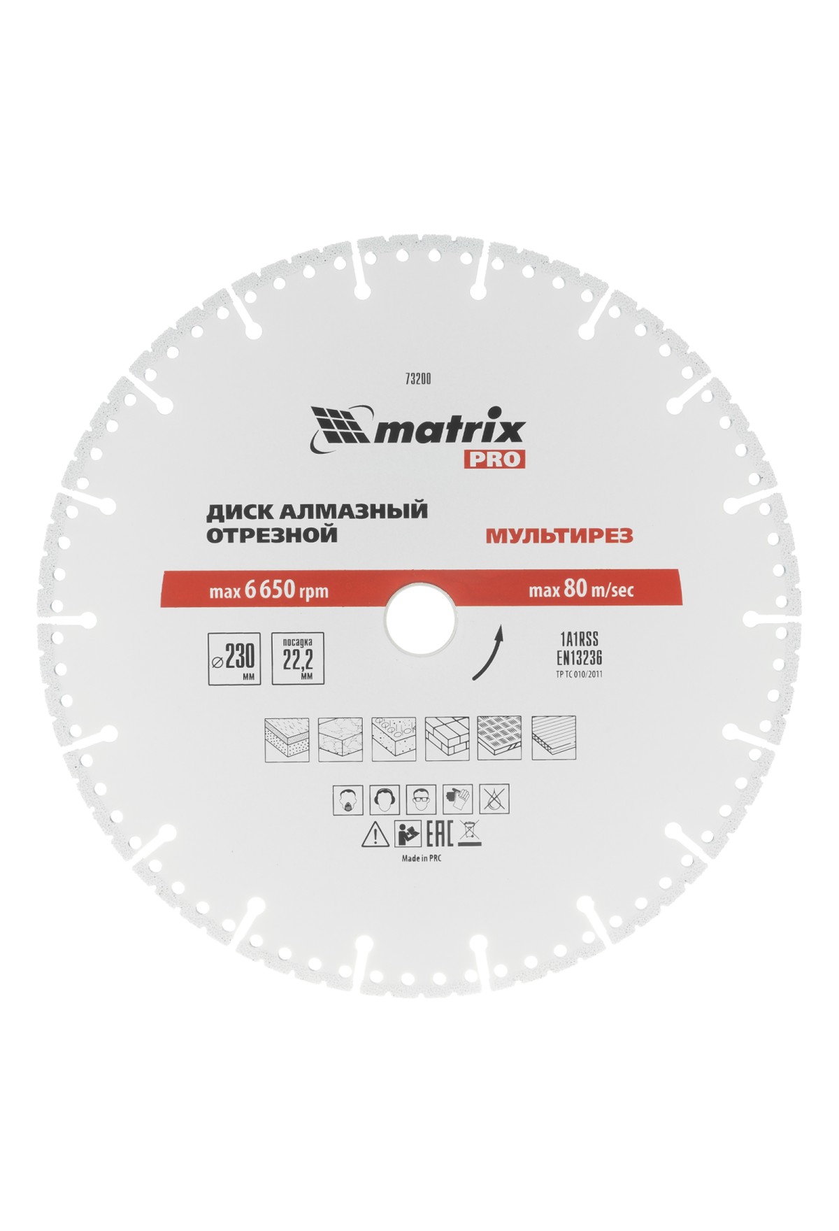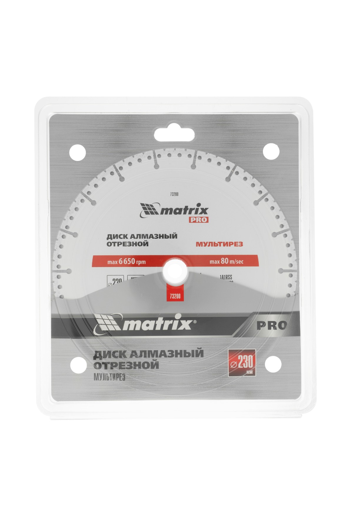 Алмазный отрезной диск Matrix PRO Мультирез 73200 диаметром 230 х 22,2 мм применяется для сухого и мокрого резания бетона любой твердости, железобетона, гранита, кирпича, металла, древесины, пластика и других материалов. Используется в качестве универсального режущего инструмента в профессиональной сфере, например, строительными, специальными службами, сотрудниками МЧС. К работе с диском необходимо приступать после ознакомления с руководством пользователя.