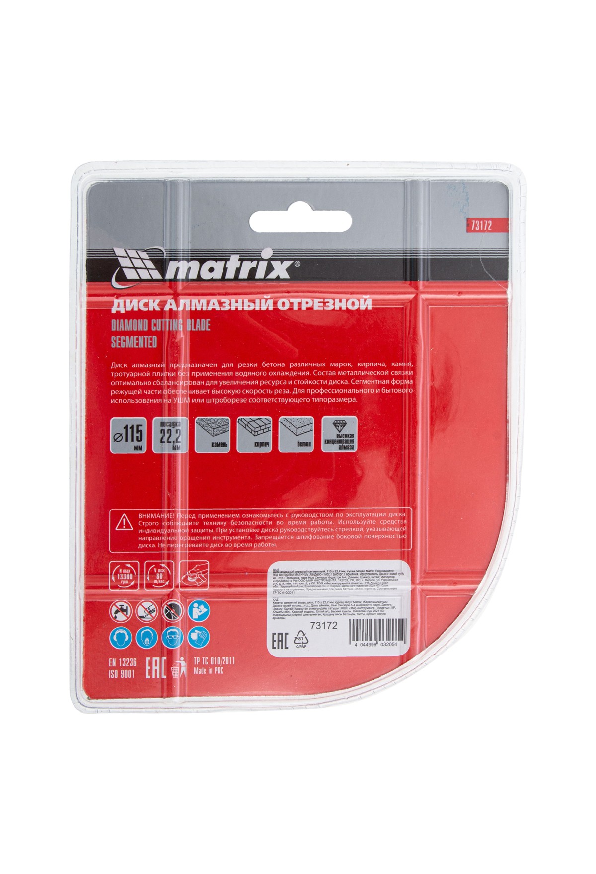 Алмазный отрезной сегментный диск Matrix 73172 диаметром 115 х 22,2 мм предназначен для сухой резки натурального и искусственного камня, кирпича, свежего и твердого бетона. Применяется с углошлифовальными машинами соответствующего типоразмера. Благодаря высокой скорости реза диск позволяет выполнять работы большого объема. Он пригодится на небольших строительных площадках и будет идеальным помощником при решении бытовых задач.