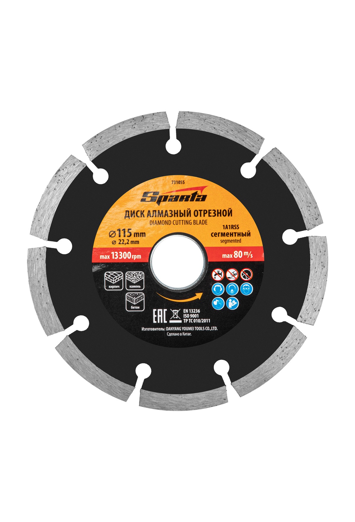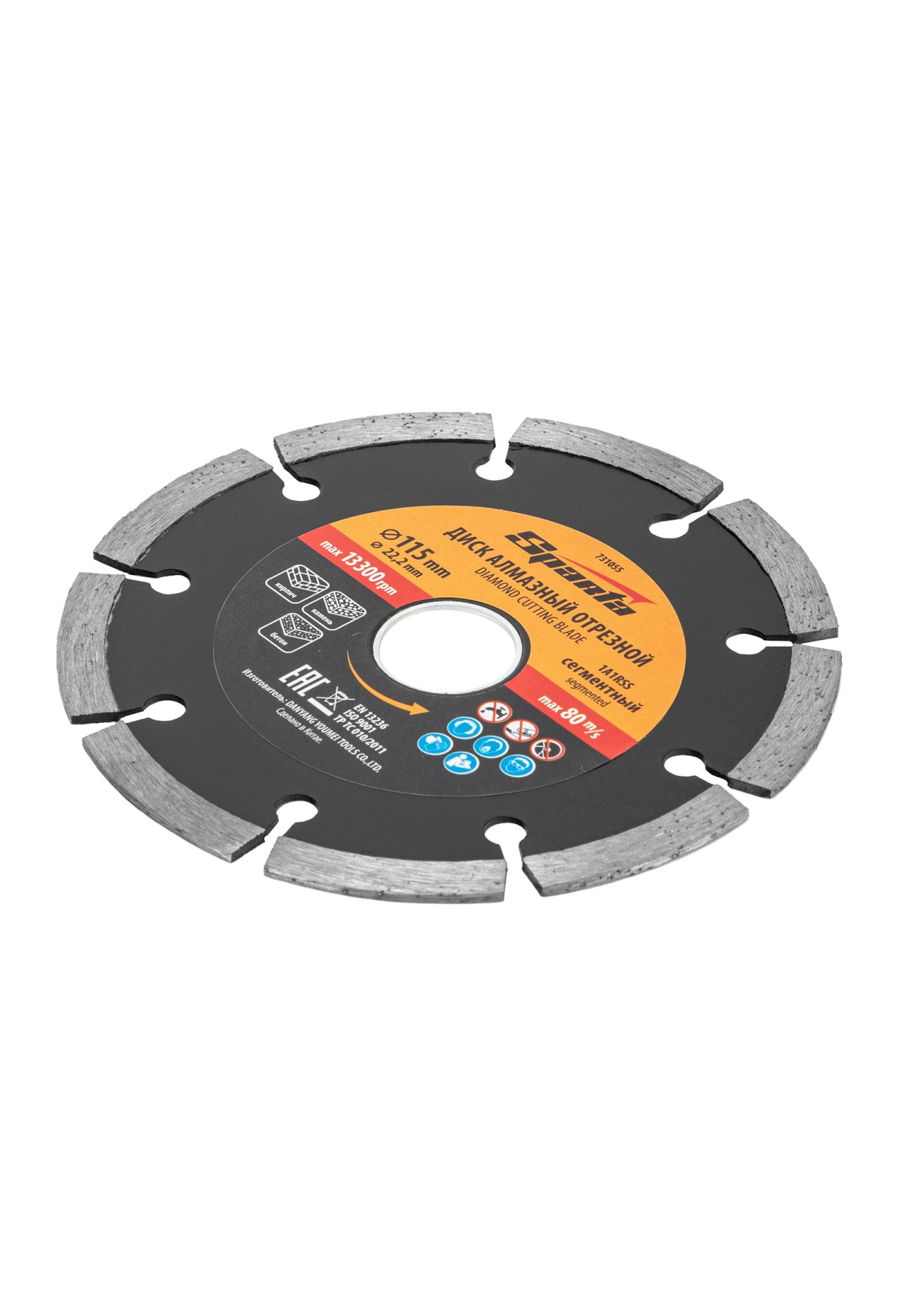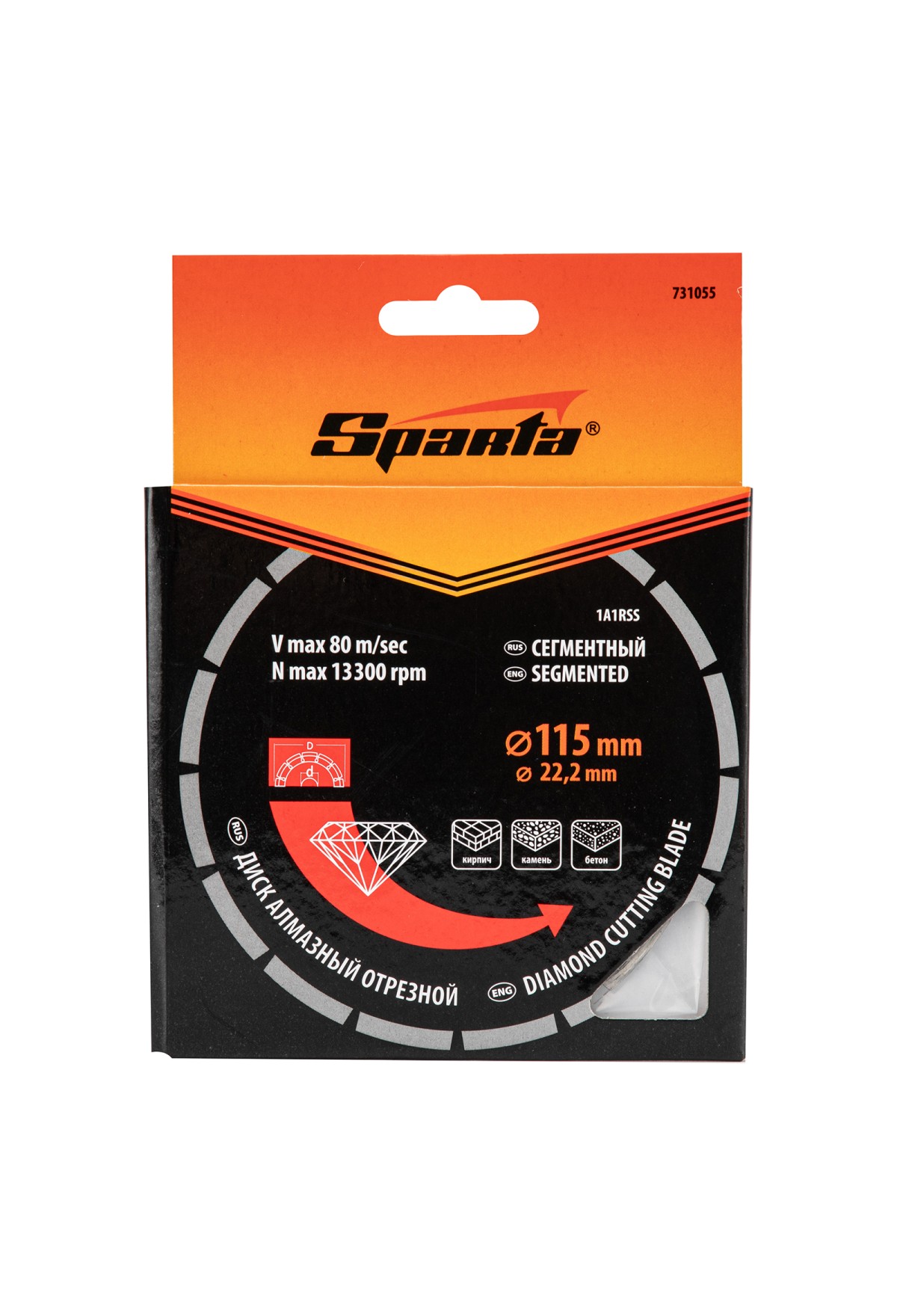 Технические характеристики Диск алмазный, отрезной сегментный, 115 х 22.2 мм, сухая резка Sparta