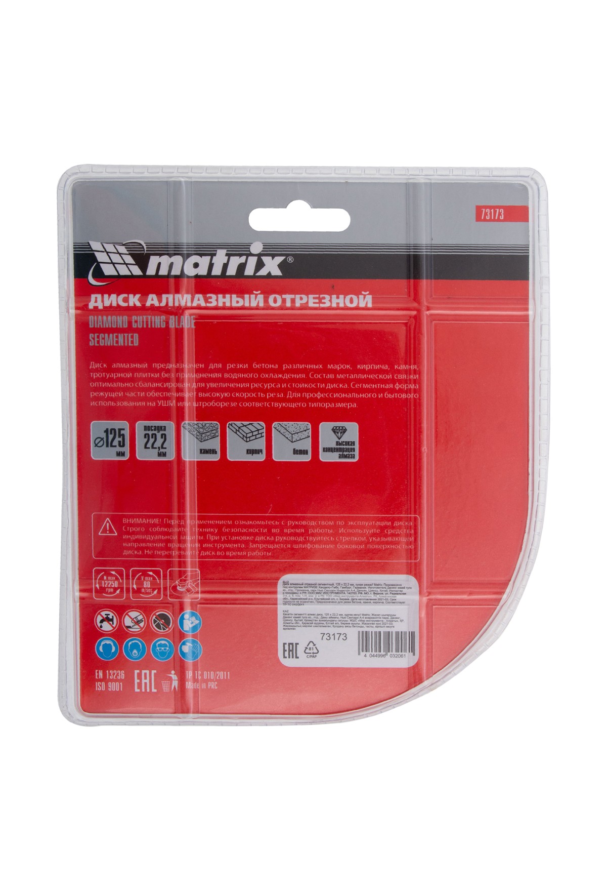 Алмазный отрезной сегментный диск Matrix 73173 диаметром 125 х 22,2 мм предназначен для сухой резки натурального и искусственного камня, кирпича, свежего и твердого бетона. Применяется с углошлифовальными машинами соответствующего типоразмера. Благодаря высокой скорости реза диск позволяет выполнять работы большого объема. Он пригодится на небольших строительных площадках и будет идеальным помощником при решении бытовых задач.