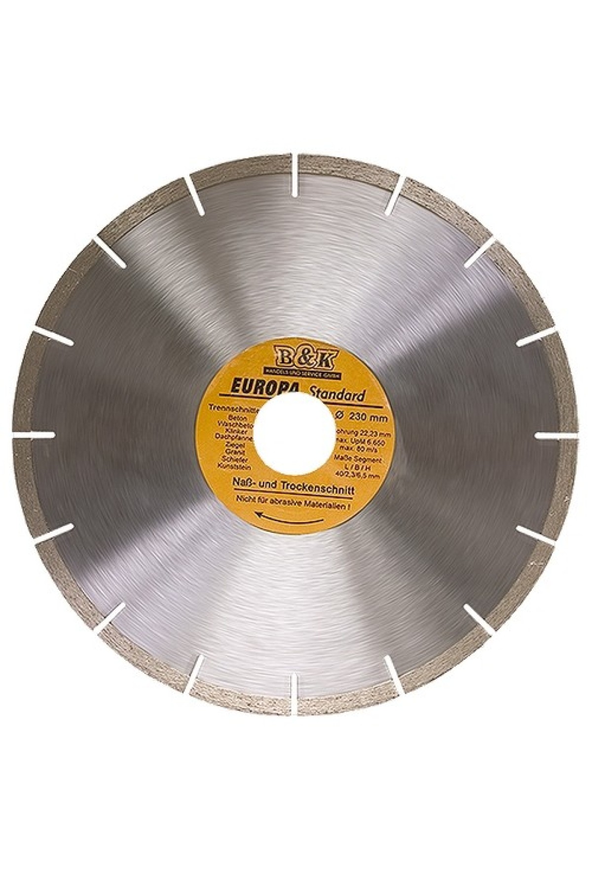 Технические характеристики Диск алмазный, отрезной сегментный, 180 х 22.2 мм, сухая резка, EUROPA Standard Sparta