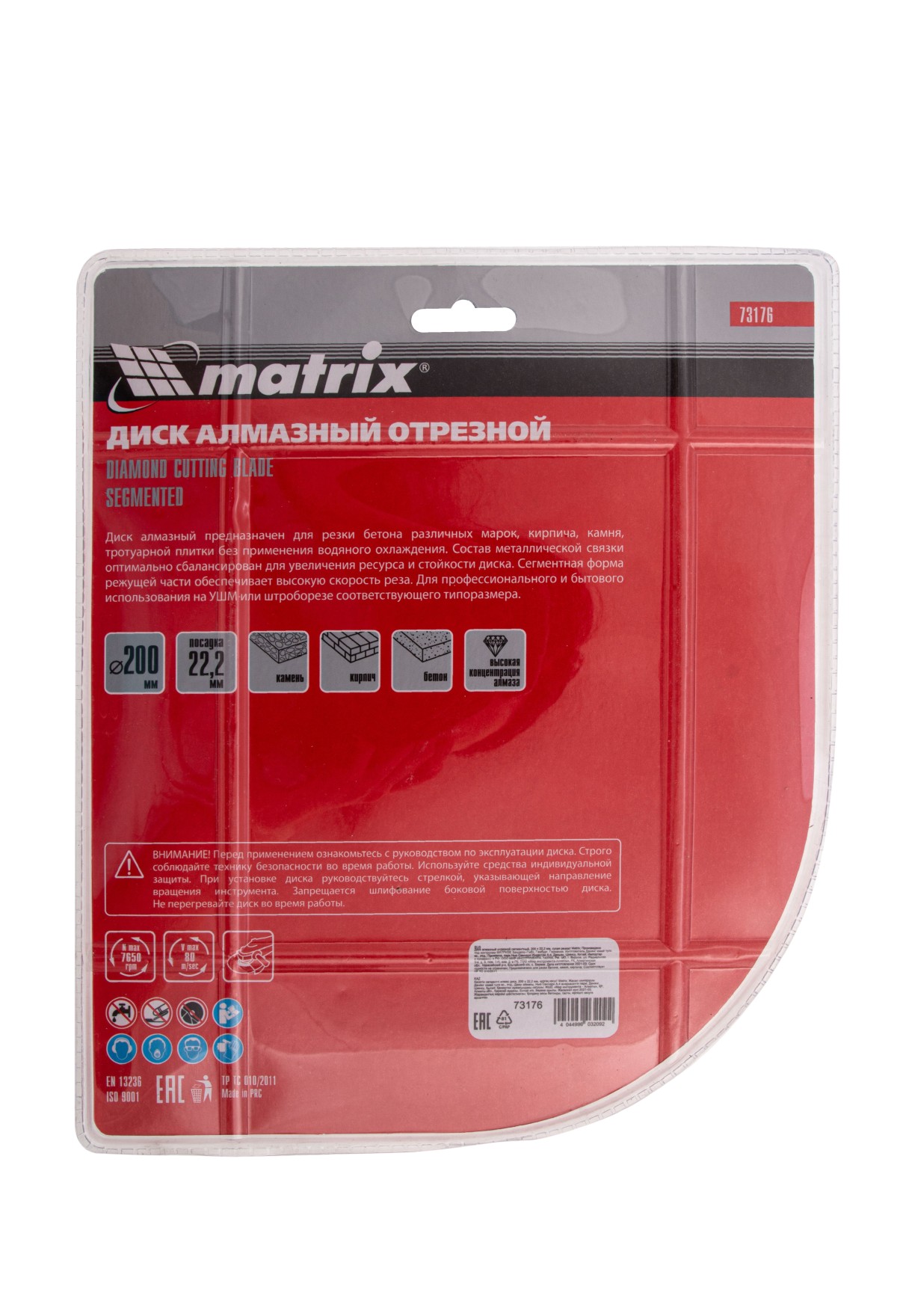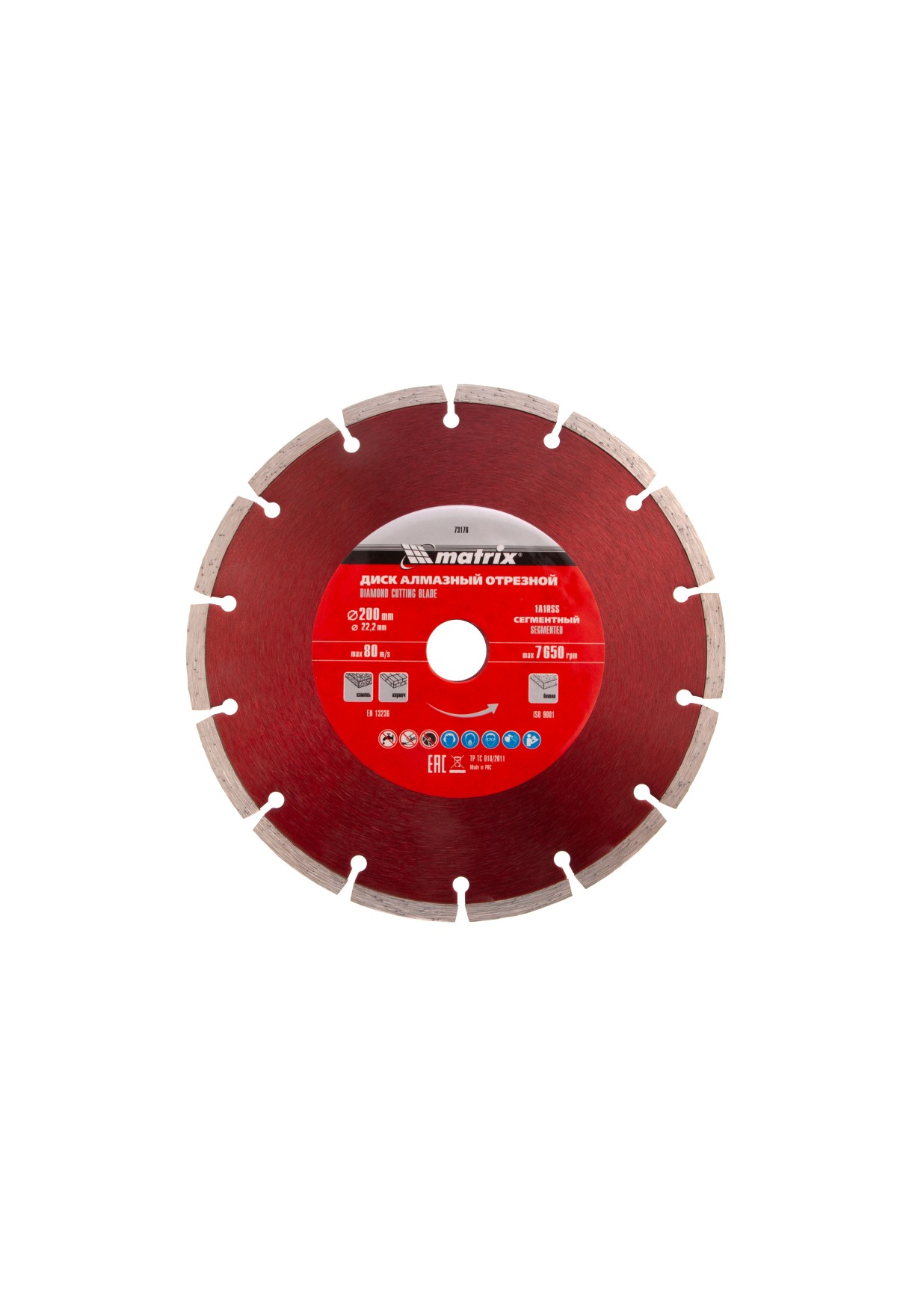 Алмазный отрезной сегментный диск Matrix 73176 диаметром 200 х 22,2 мм предназначен для сухой резки натурального и искусственного камня, кирпича, свежего и твердого бетона. Применяется с углошлифовальными машинами соответствующего типоразмера. Благодаря высокой скорости реза диск позволяет выполнять работы большого объема. Он пригодится на небольших строительных площадках и будет идеальным помощником при решении бытовых задач.