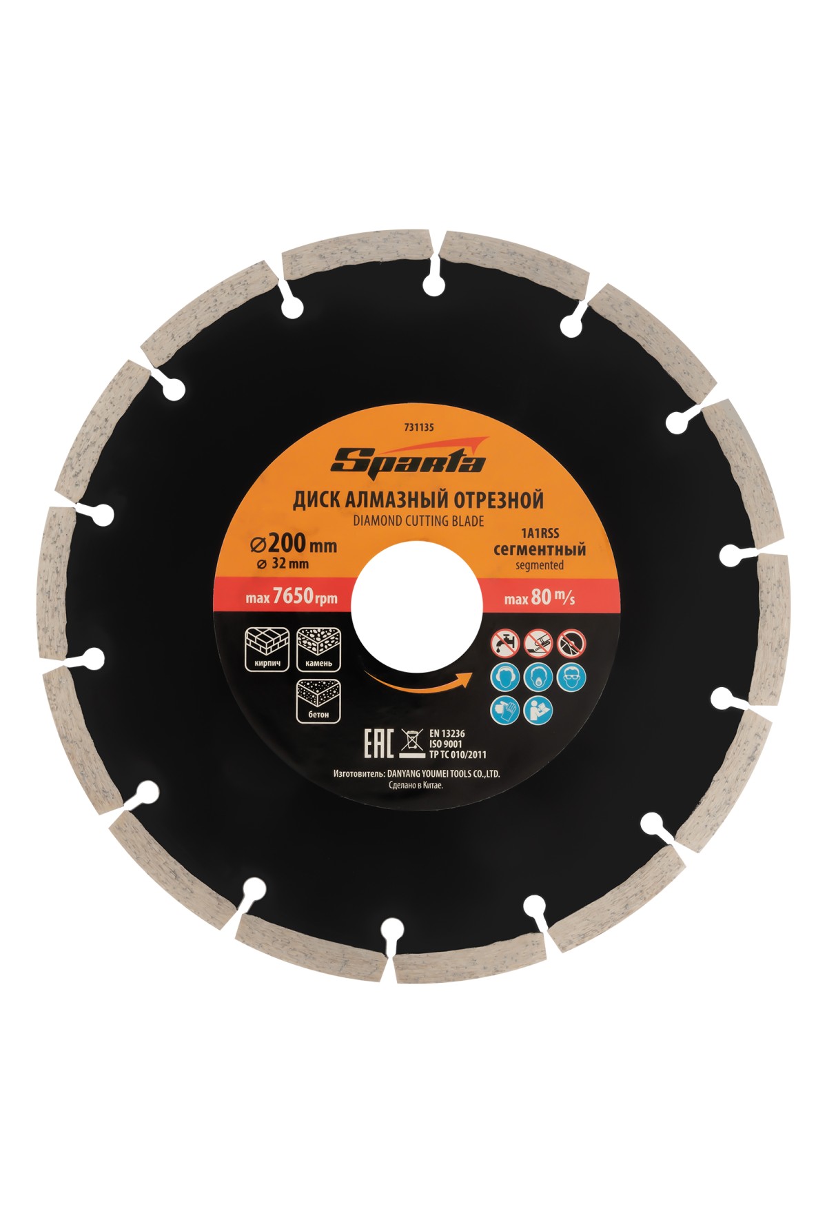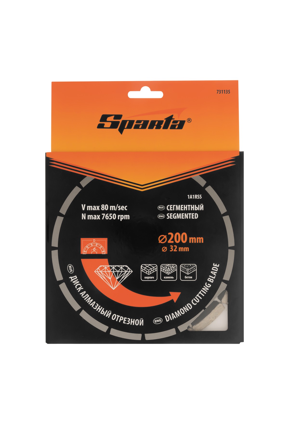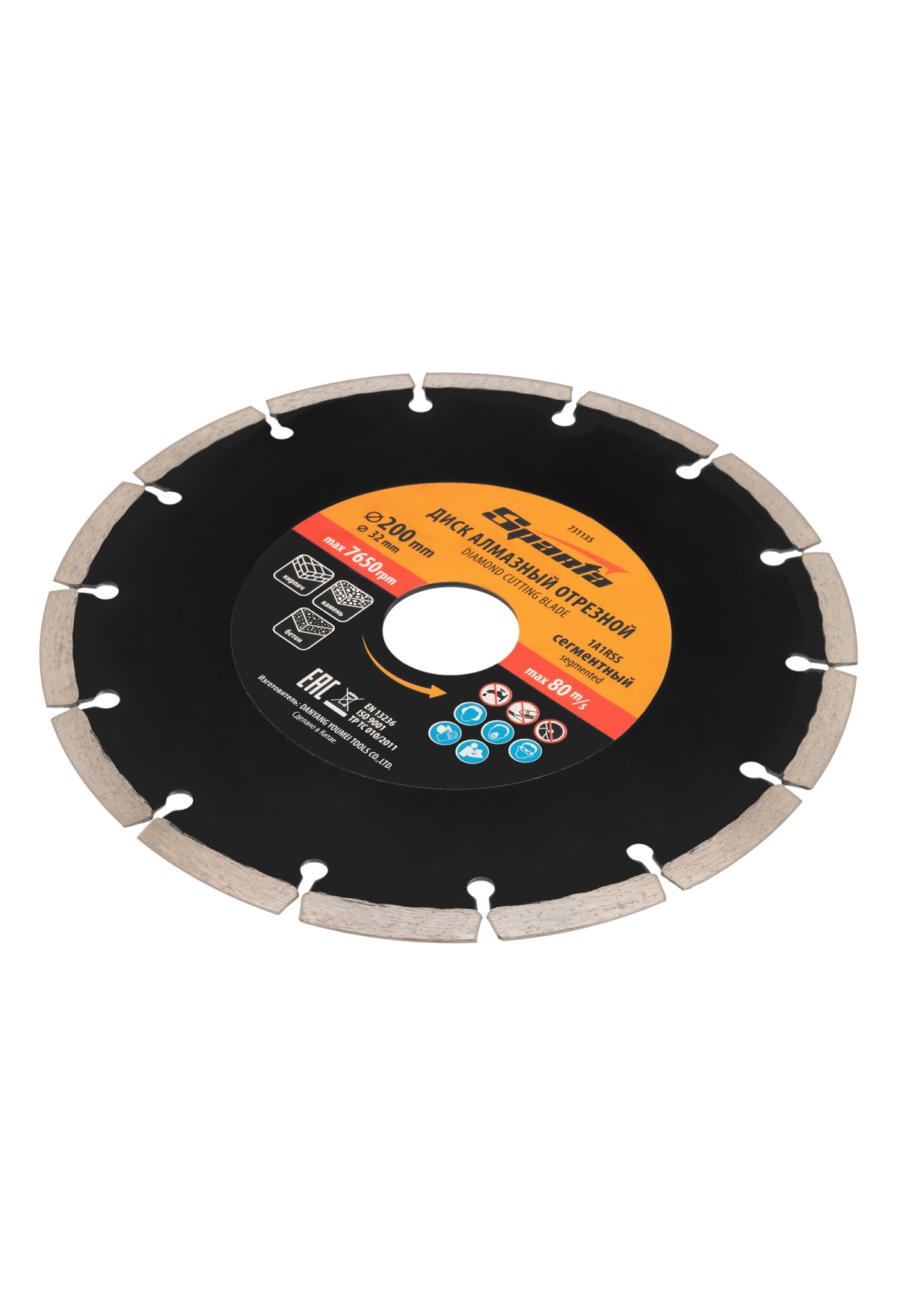 Технические характеристики Диск алмазный, отрезной сегментный, 200 х 32 мм, сухая резка Sparta