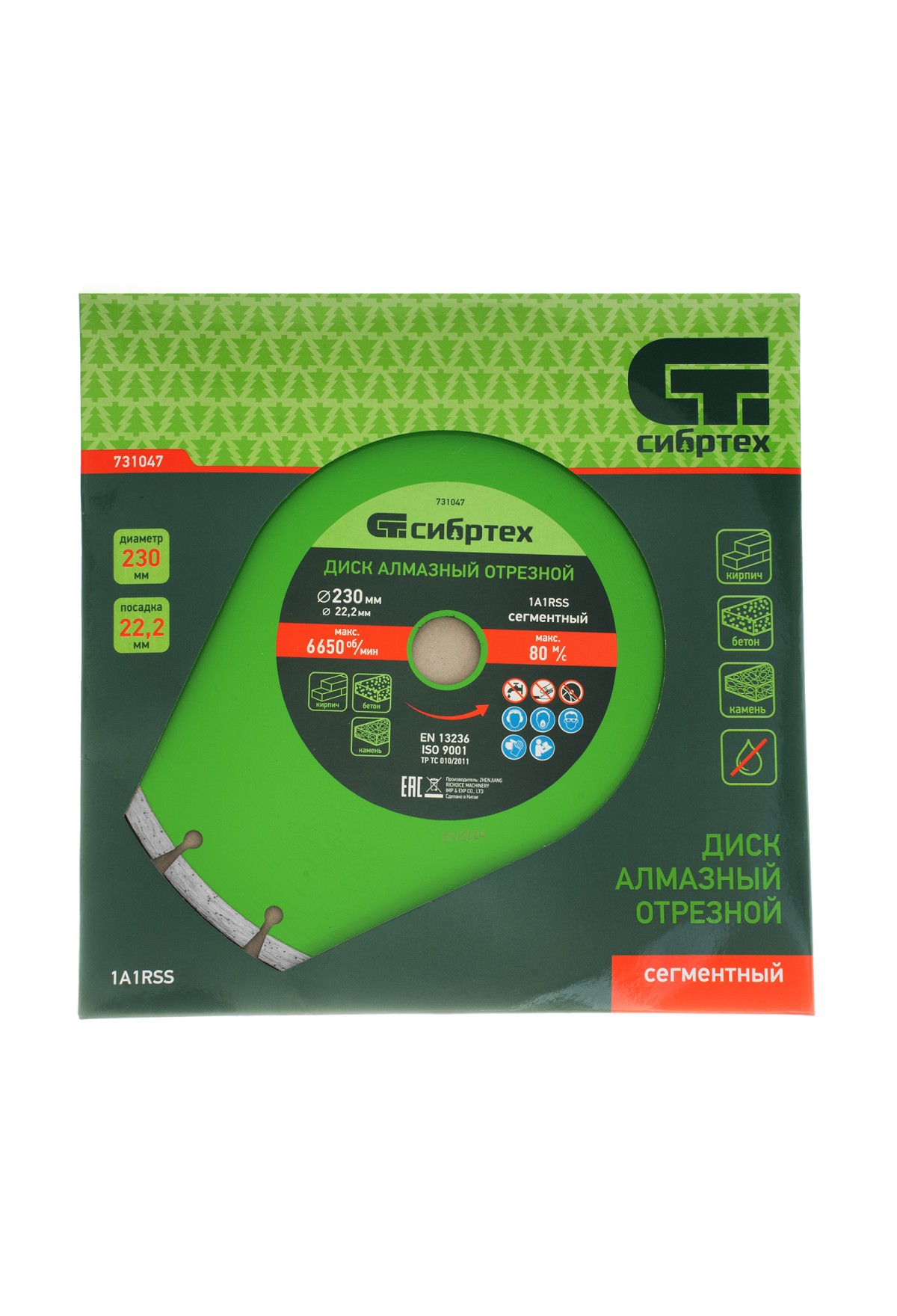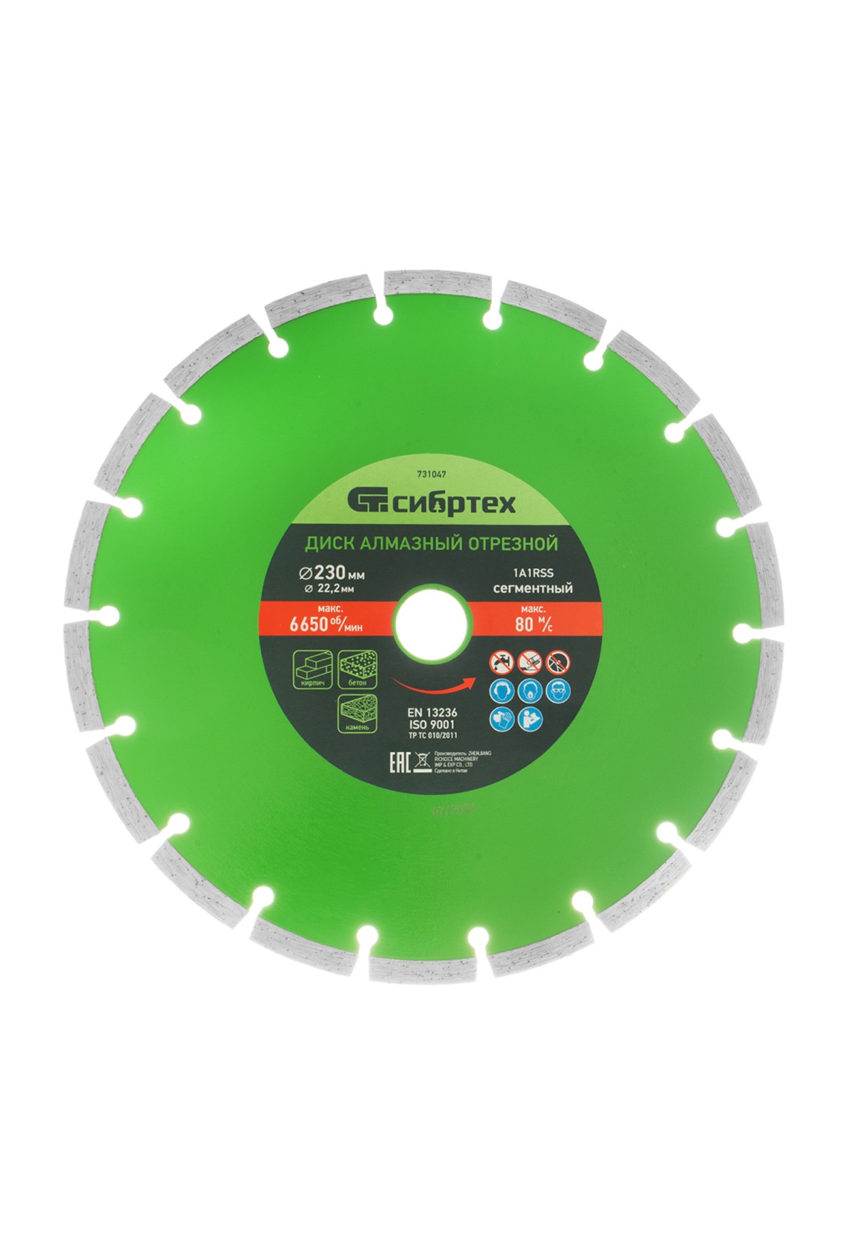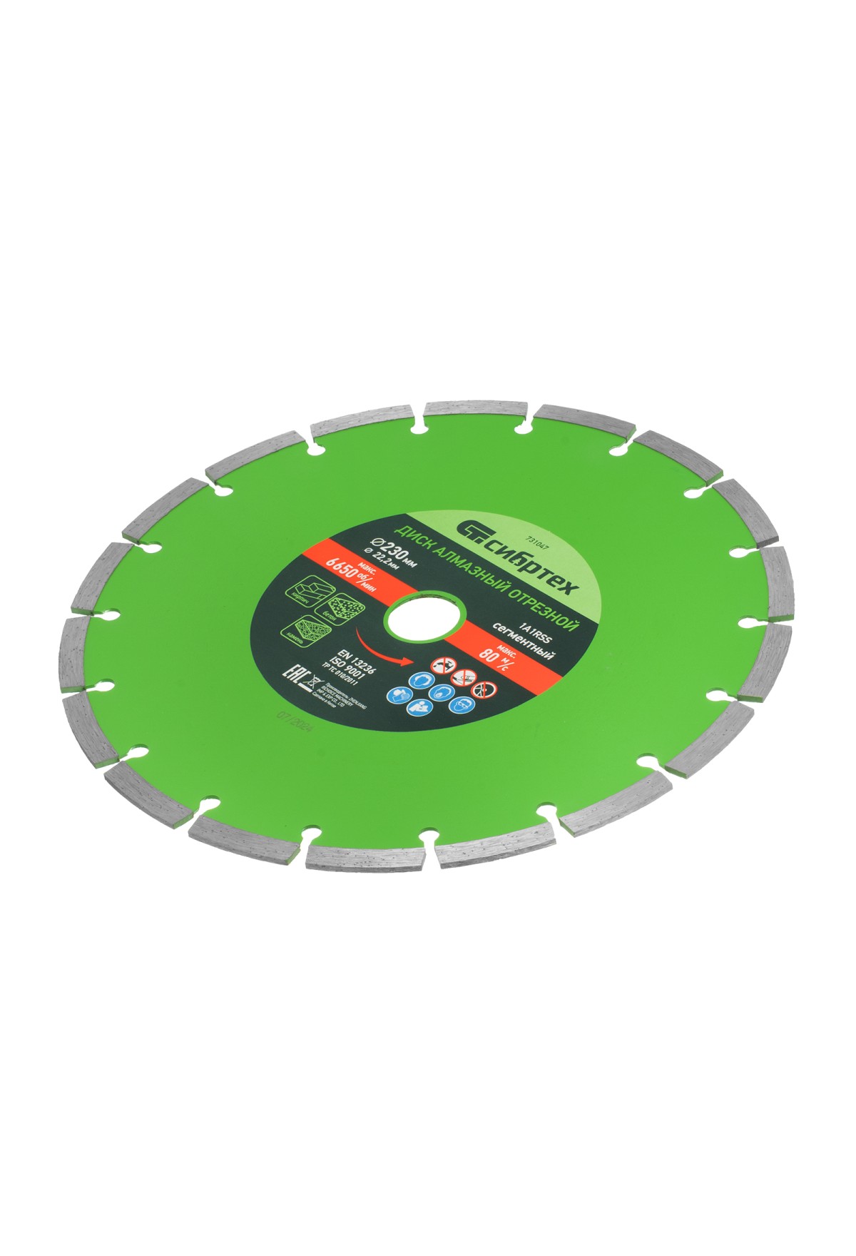 Технические характеристики Диск алмазный, отрезной сегментный, 230 х 22.2 мм, сухая резка Сибртех