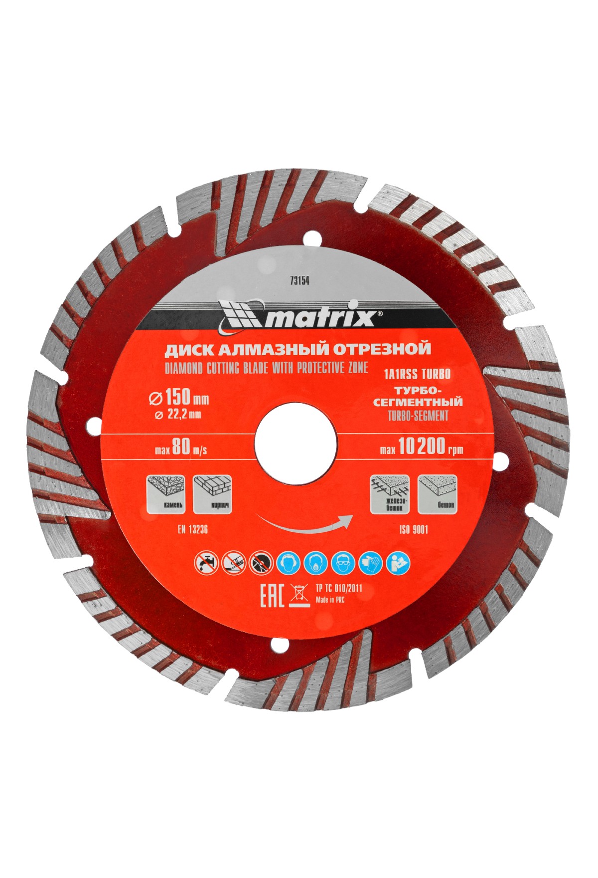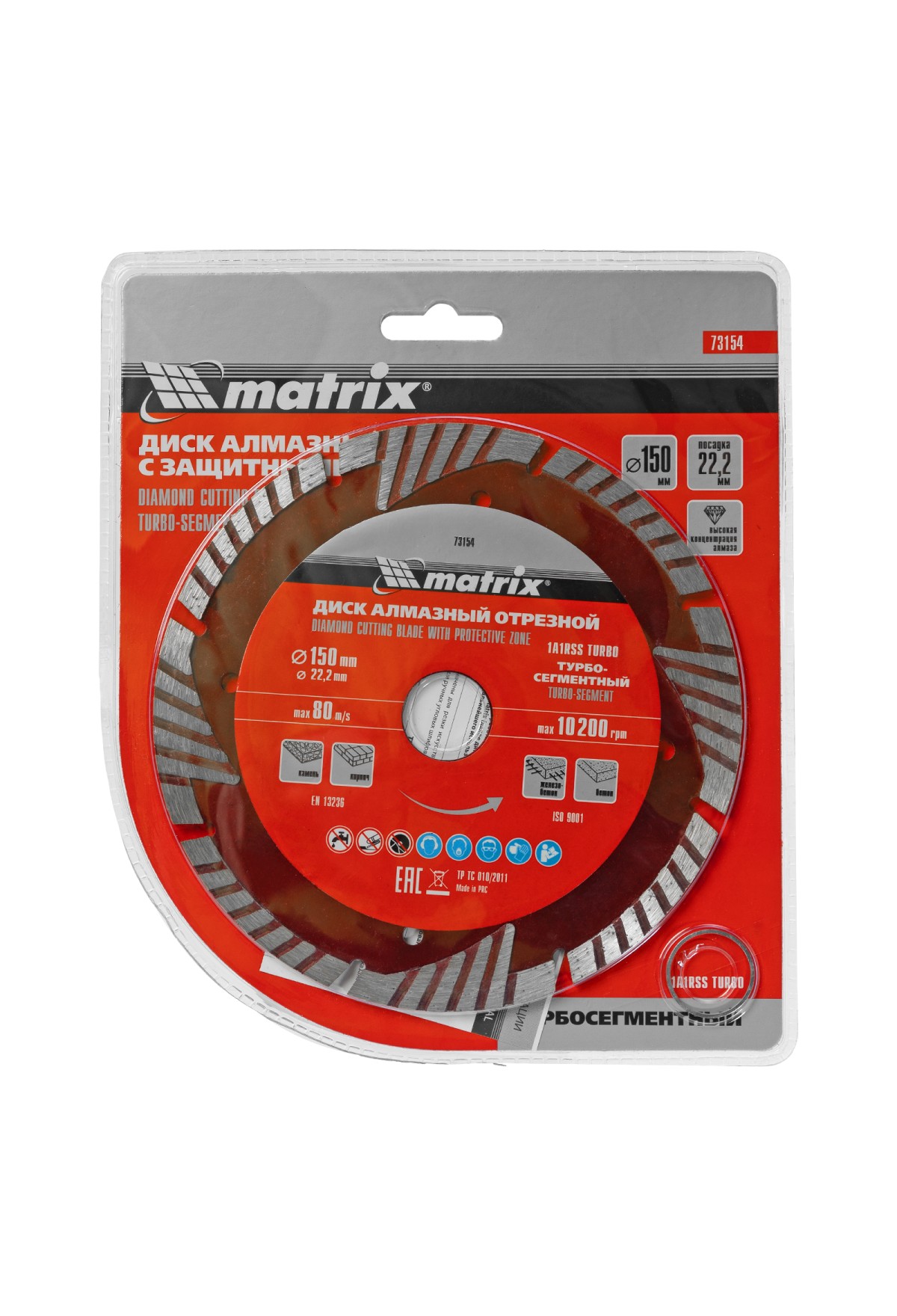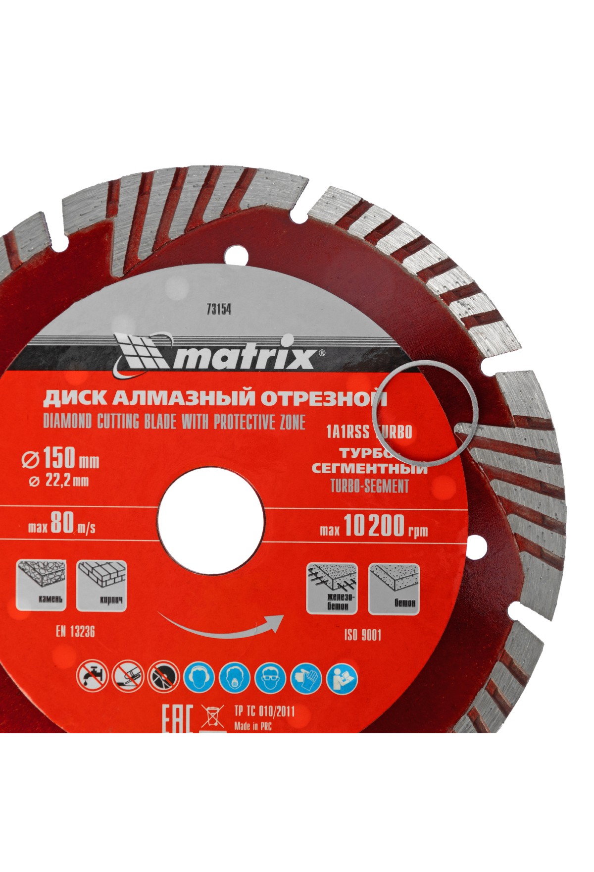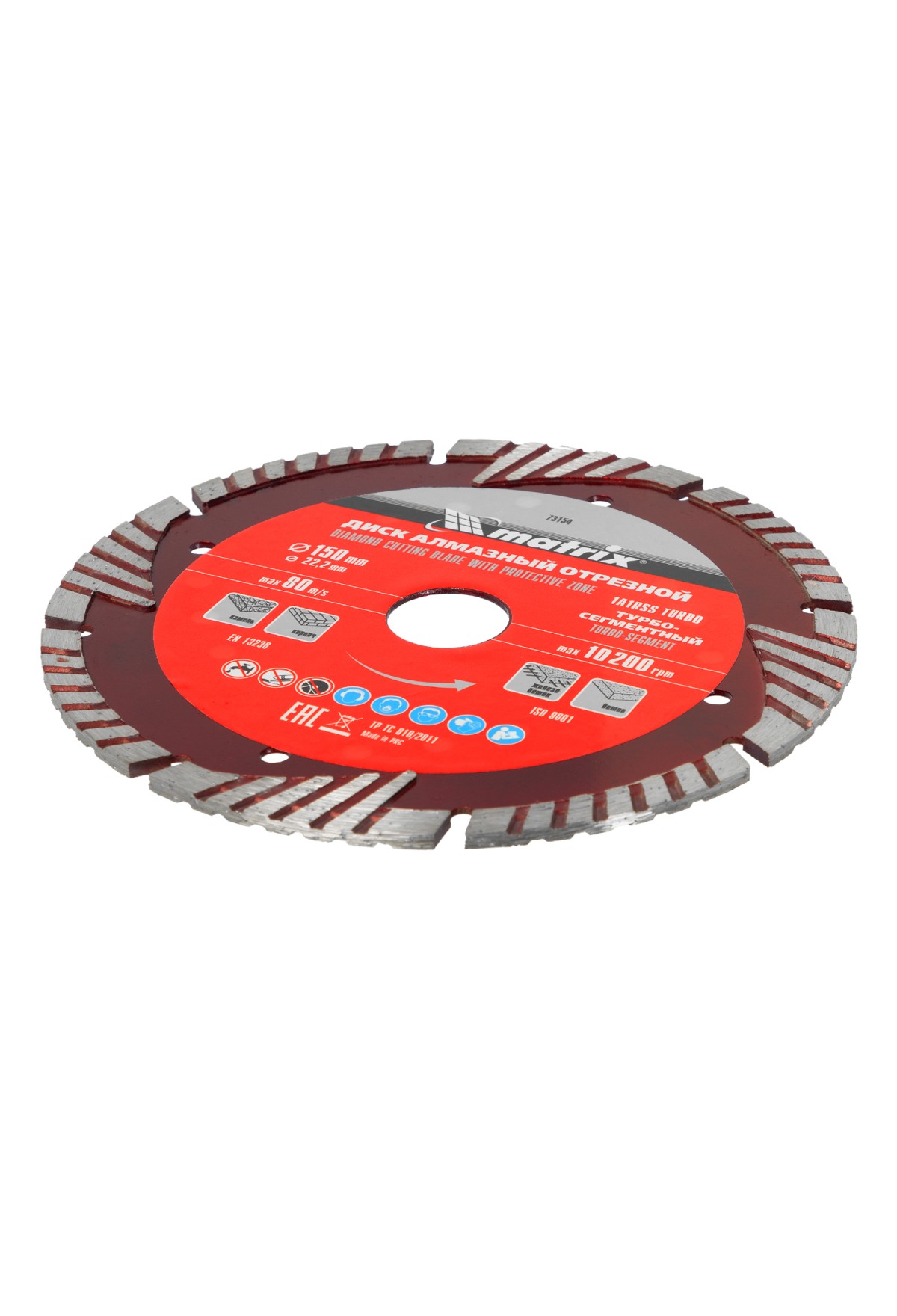 Технические характеристики Диск алмазный, отрезной сегментный с защитными сект, 150 х 22.2 мм, сухая резка Matrix Professional