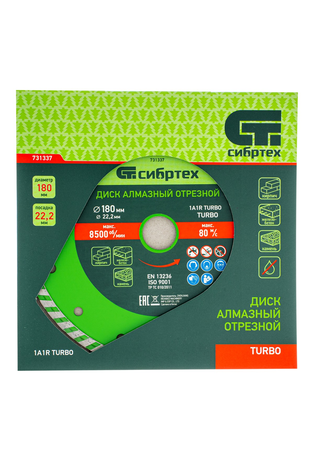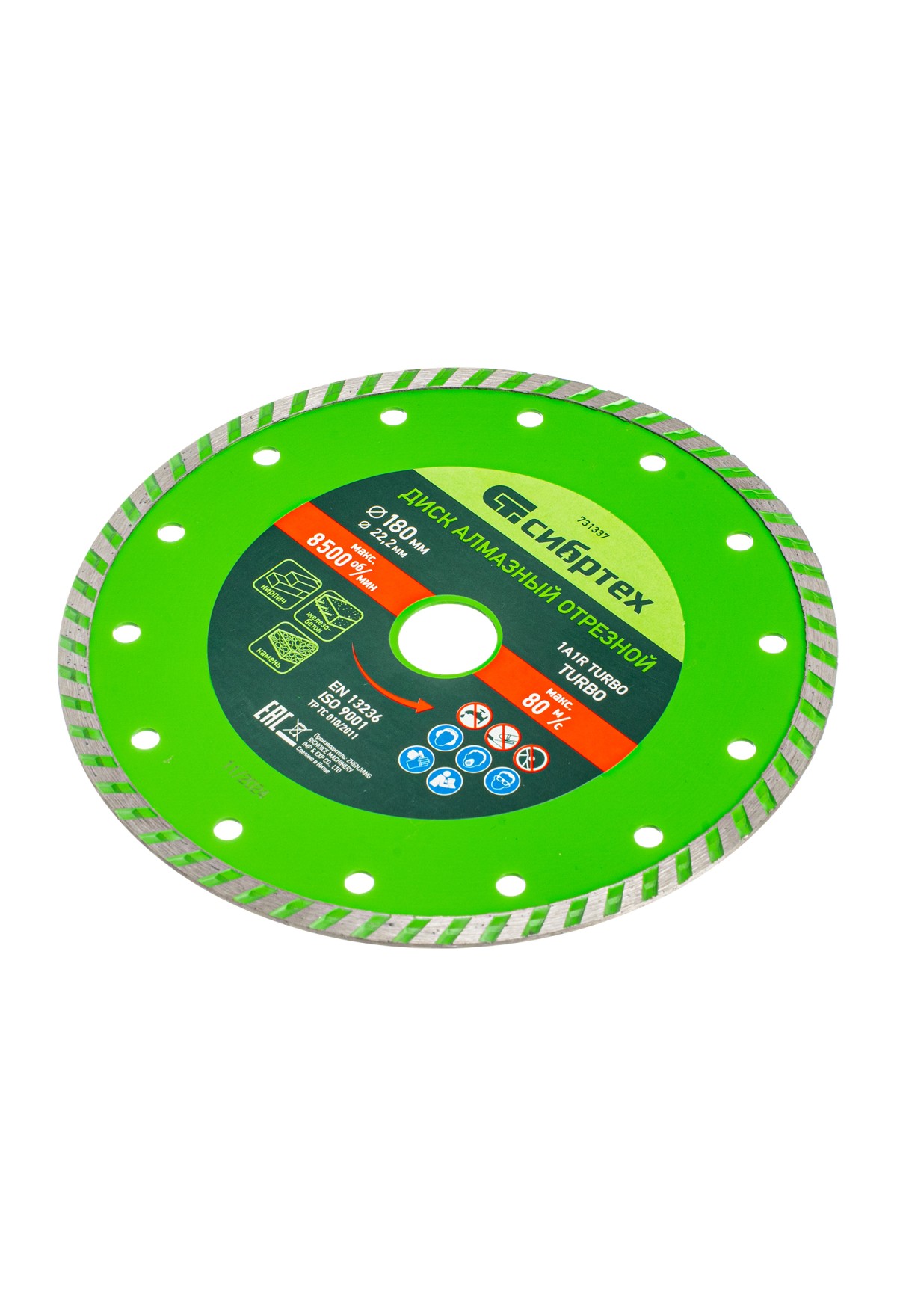 Алмазный отрезной диск Сибртех Turbo 731337 для сухой резки, диаметром 180 х 22,2 мм, устанавливается на углошлифовальную машину. Позволяет резать твердые материалы: бетон, железобетон, камень, песчаник. Диск предназначен для бытового использования.