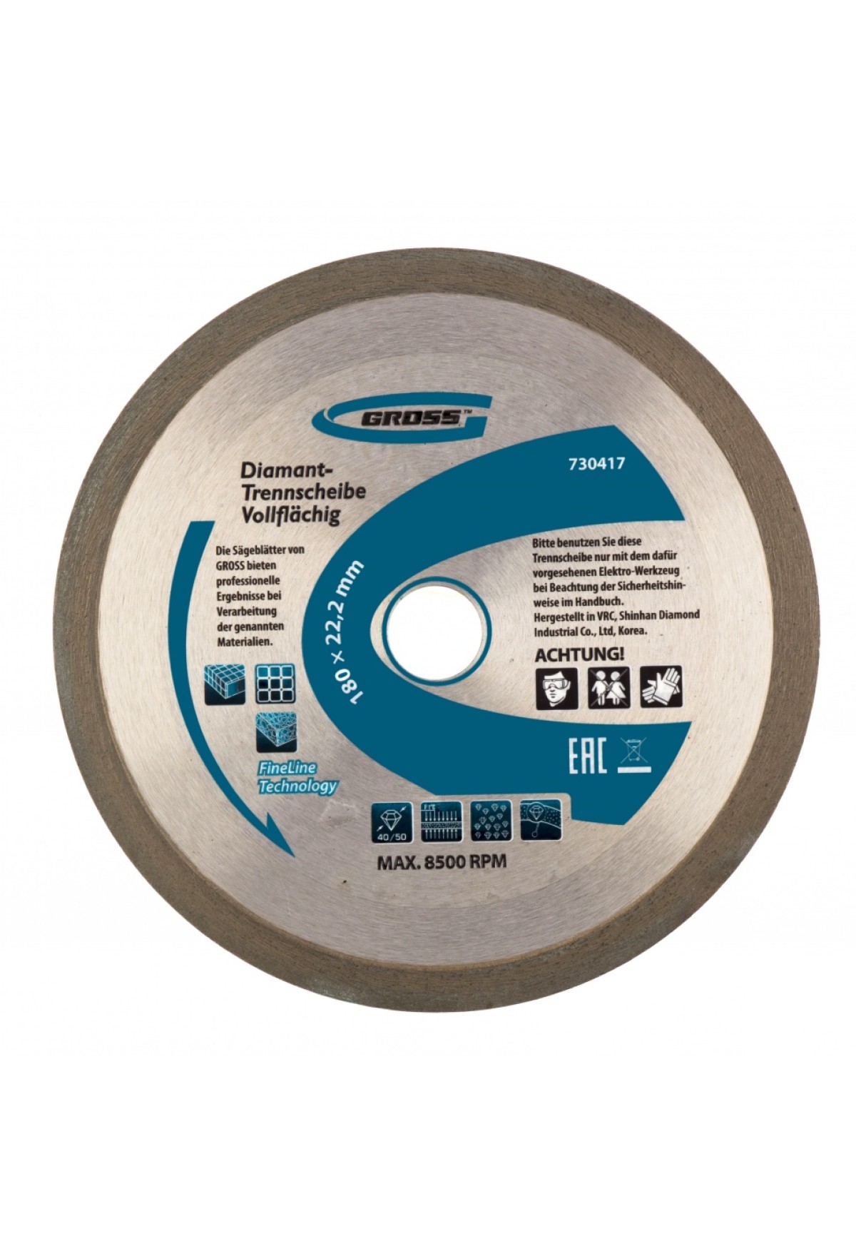 Технические характеристики Диск алмазный, 180 х 22.2 мм, сплошной, мокрая резка Gross