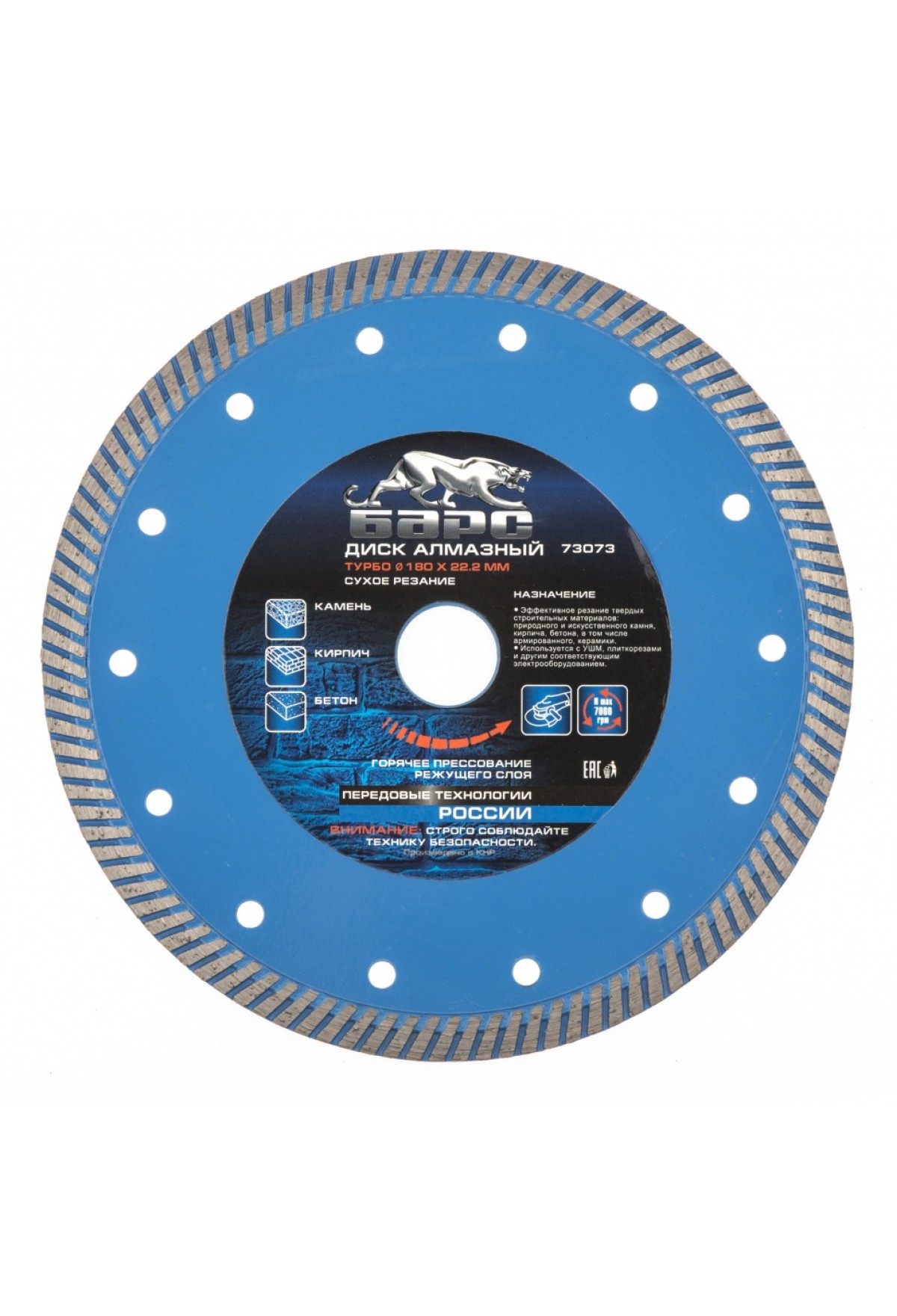 Технические характеристики Диск алмазный, Турбо 180 х 22.2 мм, сухая резка Барс