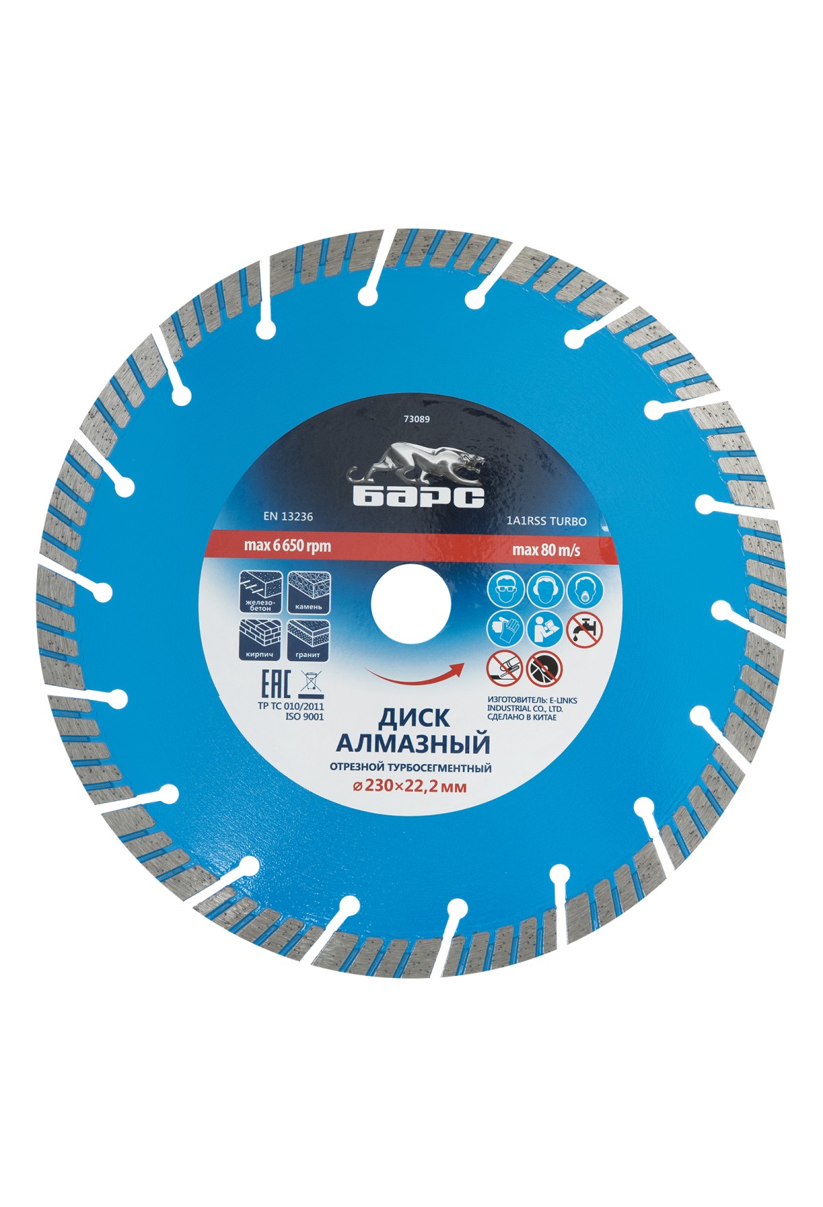 Тэги: Диск алмазный, Турбо-сегментный 230 х 22.2 мм, сухая резка Барс, VR6-73089, БАРС, VR6, VR6-Диски алмазные отрезные, VR6-Режущий инструмент