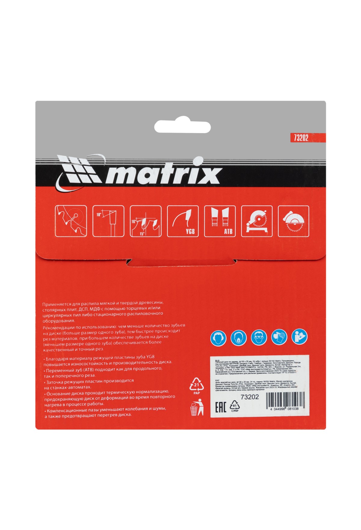 Технические характеристики Пильный диск по дереву, 130 х 20 мм, 24 зуба, кольцо 16/20 Matrix Professional