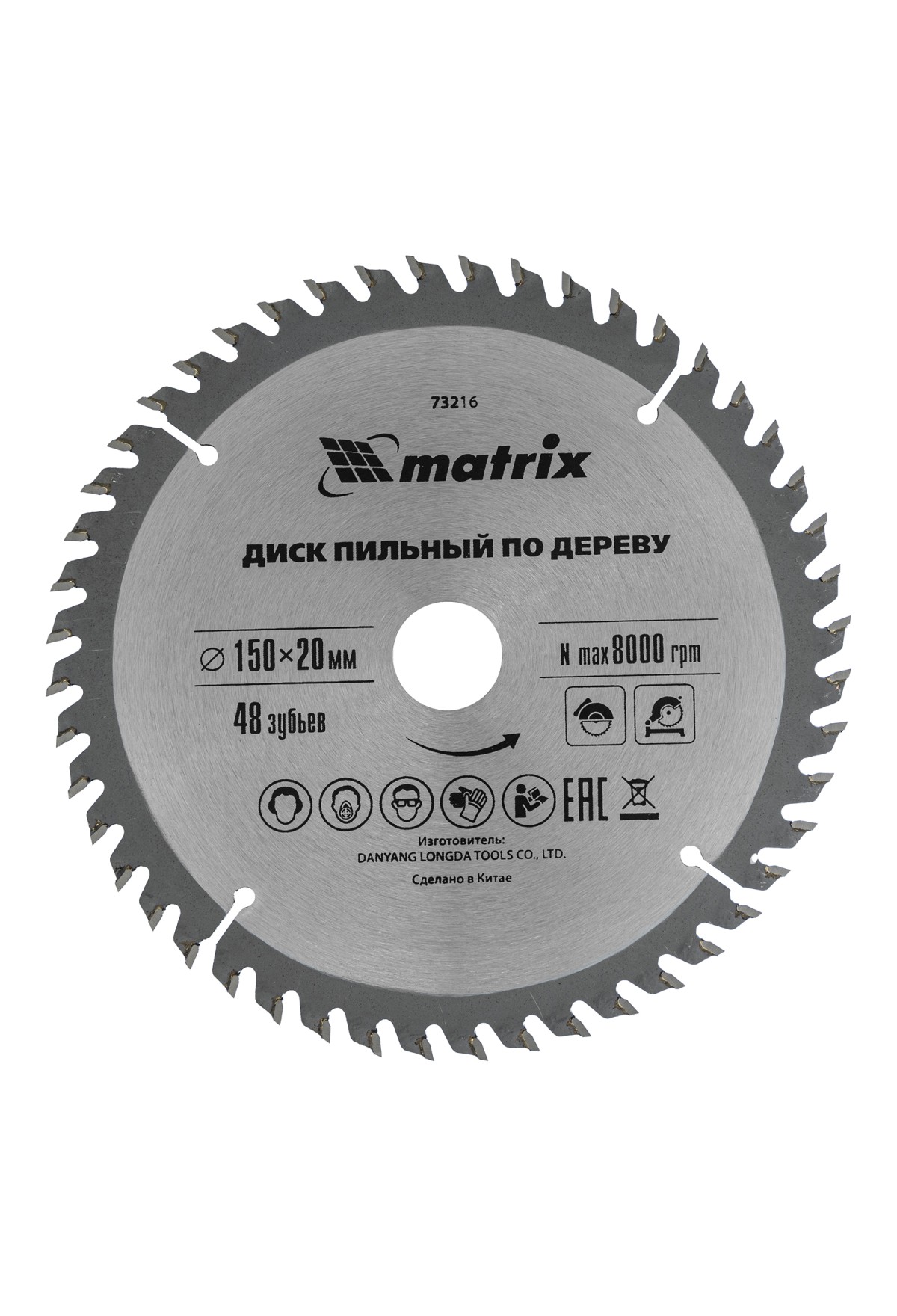Технические характеристики Пильный диск по дереву, 150 х 20 мм, 48 зубьев, кольцо 16/20 Matrix Professional