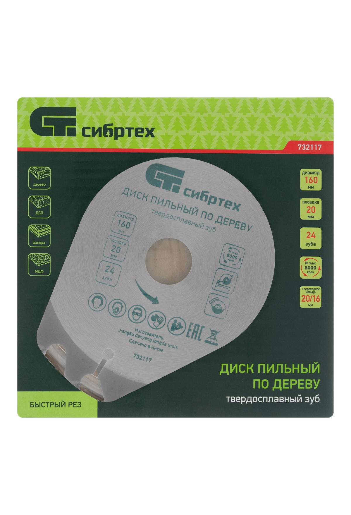 Пильный диск по дереву Сибртех 732117 диаметром 160 х 20 мм, с 24 зубьями и переходным кольцом 20/16, предназначен для быстрого распила древесины мягких и твердых пород, фанеры, ДСП, МДФ. Используется с циркулярными и торцовочными пилами с посадочным диаметром 20 мм. Переходное кольцо 20/16 позволяет при необходимости изменить размер посадки. Крупные зубья обеспечивают быстрый рез. Диск подходит для бытового применения.