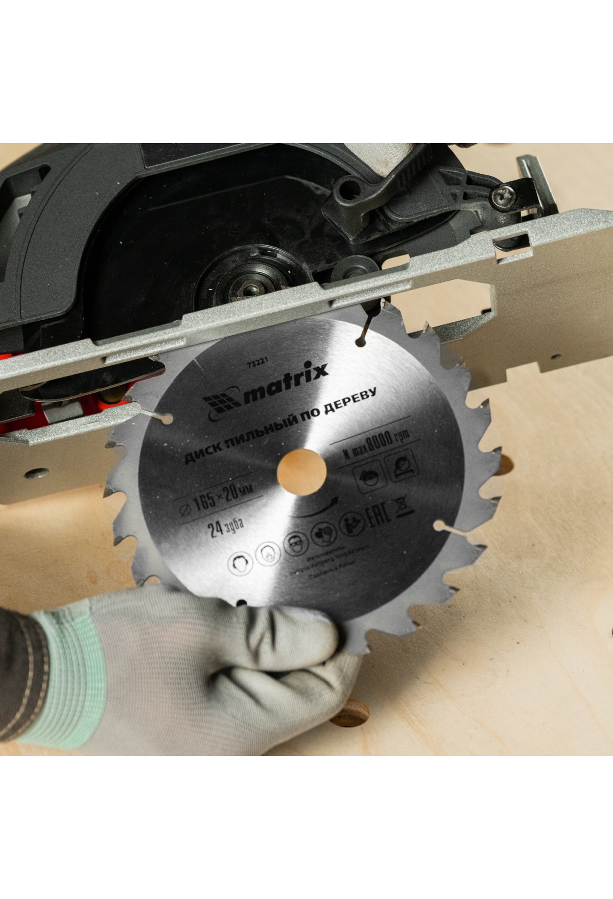 Пильный диск по дереву Matrix 73221 диаметром 165 х 20 мм, с 24 зубьями и переходным кольцом 20/16, — оснастка для циркулярных и торцовочных пил с соответствующим посадочным и внешним диаметром. Используется для продольного/поперечного реза материалов из мягкой и твердой древесины, ДСП, ДВП, фанеры, столярных плит. В комплект поставки входит переходное кольцо 20/16, позволяющее самостоятельно изменить посадочный диаметр при необходимости. Диск подходит для бытового и профессионального применения.