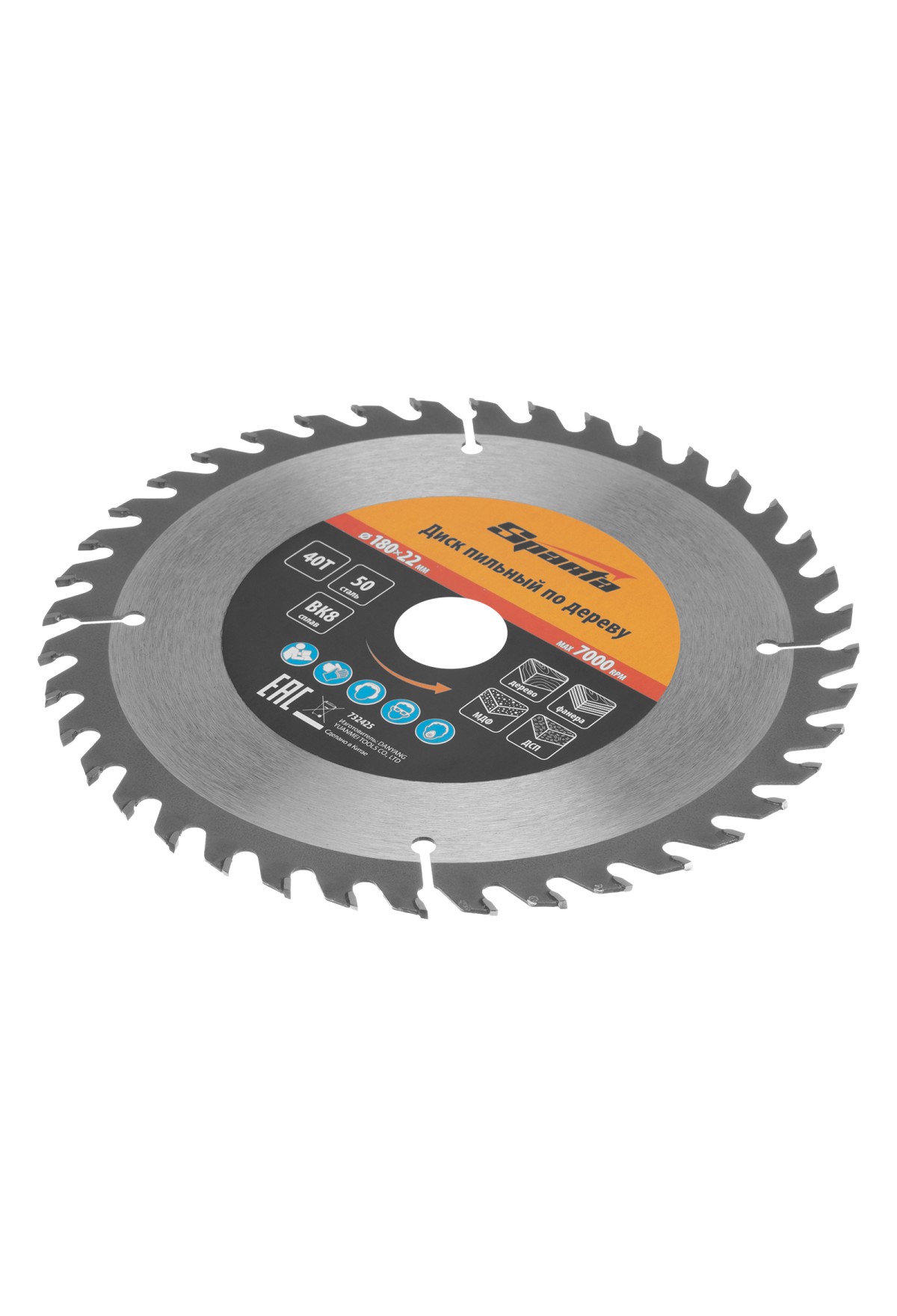 Технические характеристики Пильный диск по дереву, 180 х 22 мм, 40 зубьев Sparta