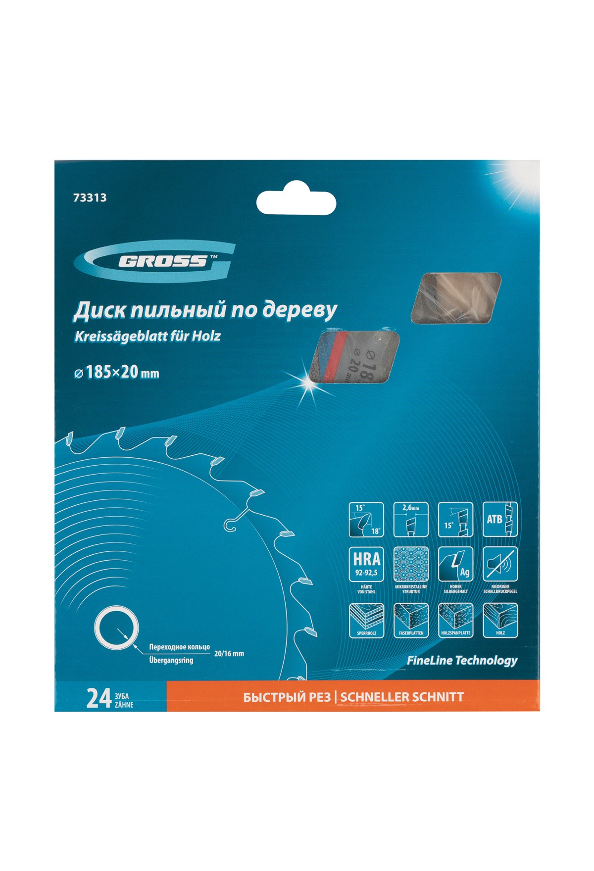 Пильный диск Gross 73313, ф185 х 20 мм, с 24 зубьями и переходным кольцом 20/16 мм, предназначен для распила древесины мягких и твердых пород, ДСП, МДФ и фанеры. Является оснасткой для циркулярных и торцовочных пил с посадочным диаметром 20 мм, благодаря универсальному типу зубьев АТВ подходит как для продольного, так и для поперечного реза материалов. Диск изготовлен на высококачественном оборудовании, специально рассчитан на профессиональное применение и выполнение большого объема работ.