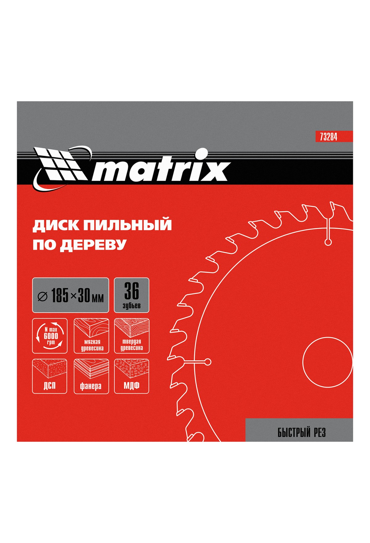 Технические характеристики Пильный диск по дереву, 185 х 30 мм, 36 зубьев Matrix Professional