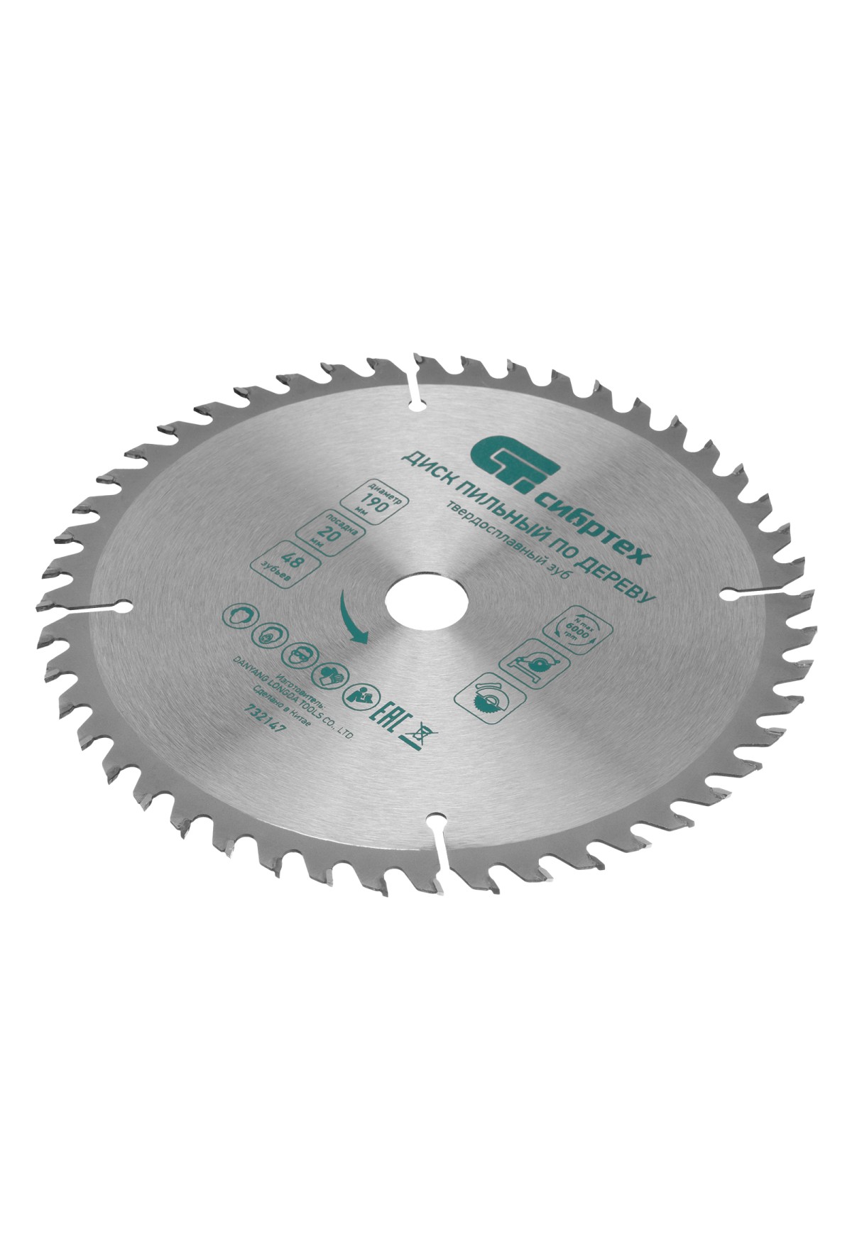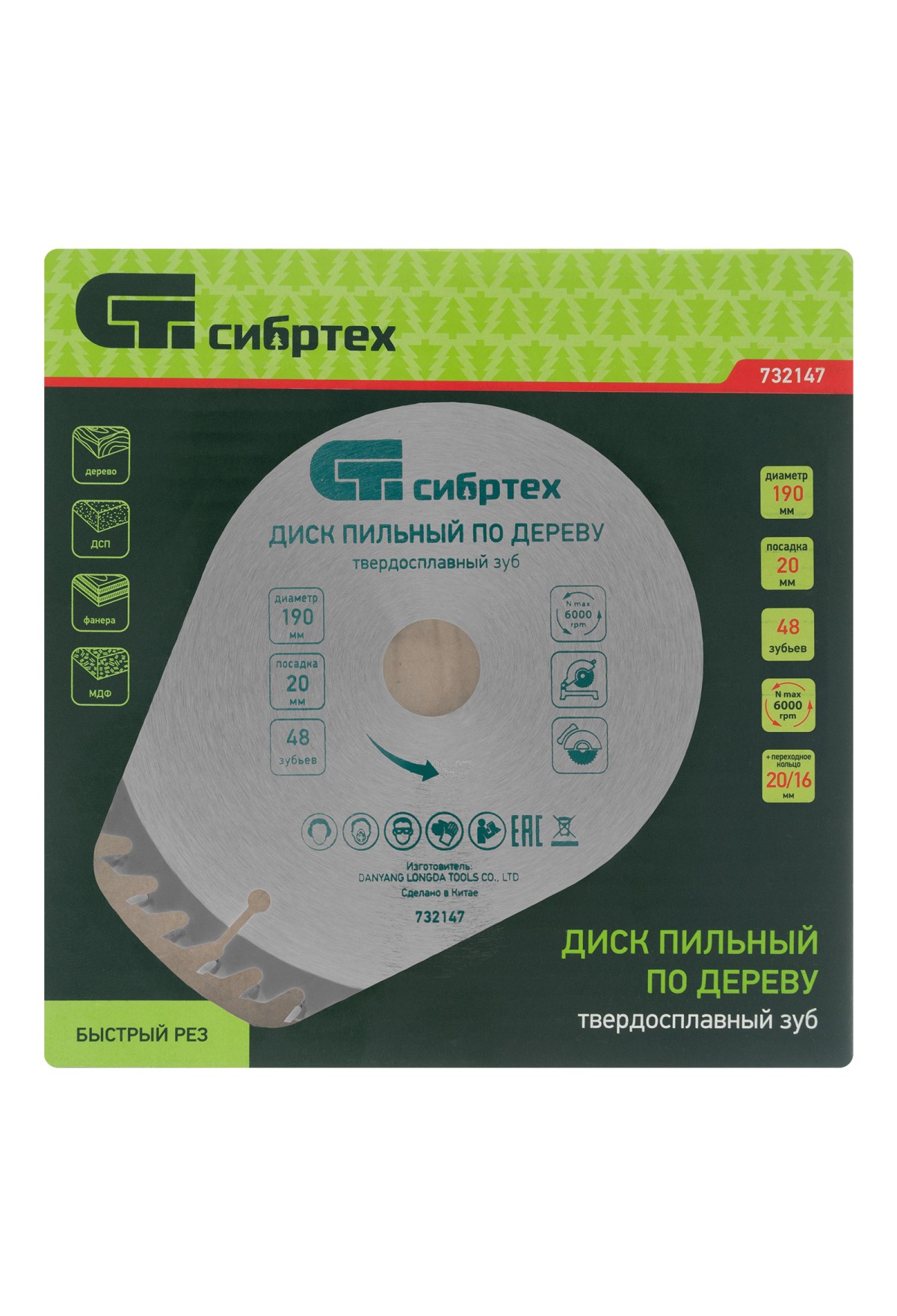 Технические характеристики Пильный диск по дереву, 190 х 20 мм, 48 зубьев, кольцо 16/20 Сибртех