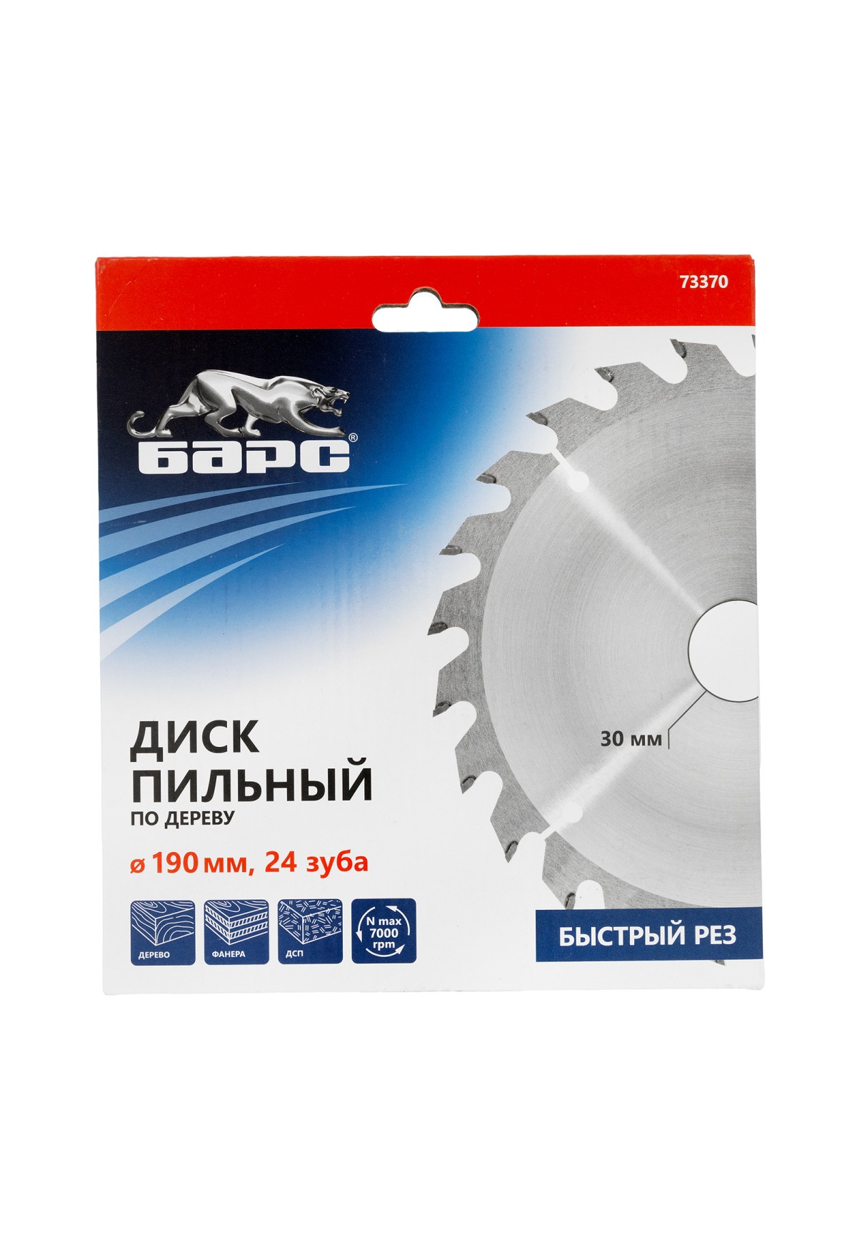 • Пильный диск по дереву 190 x 30 мм, 24 твердосплавных зуба Барс
