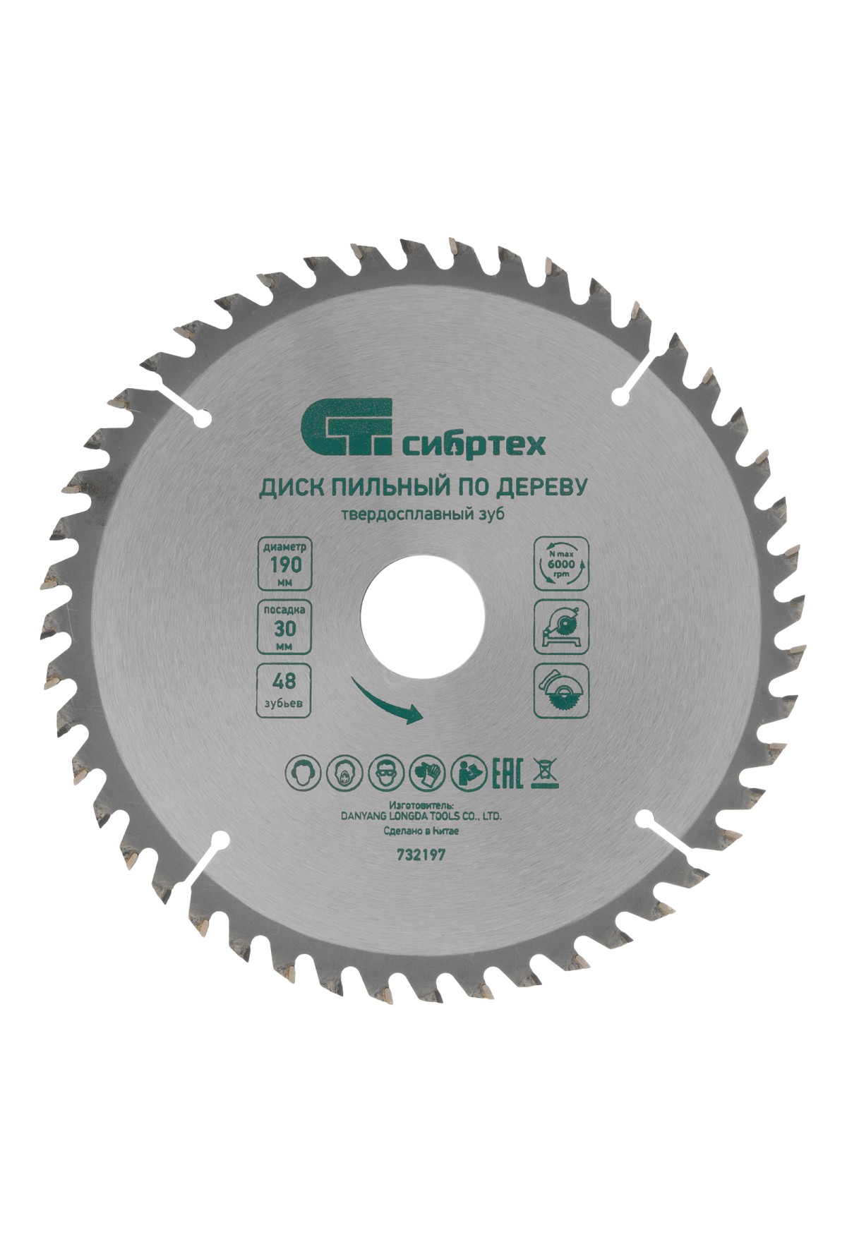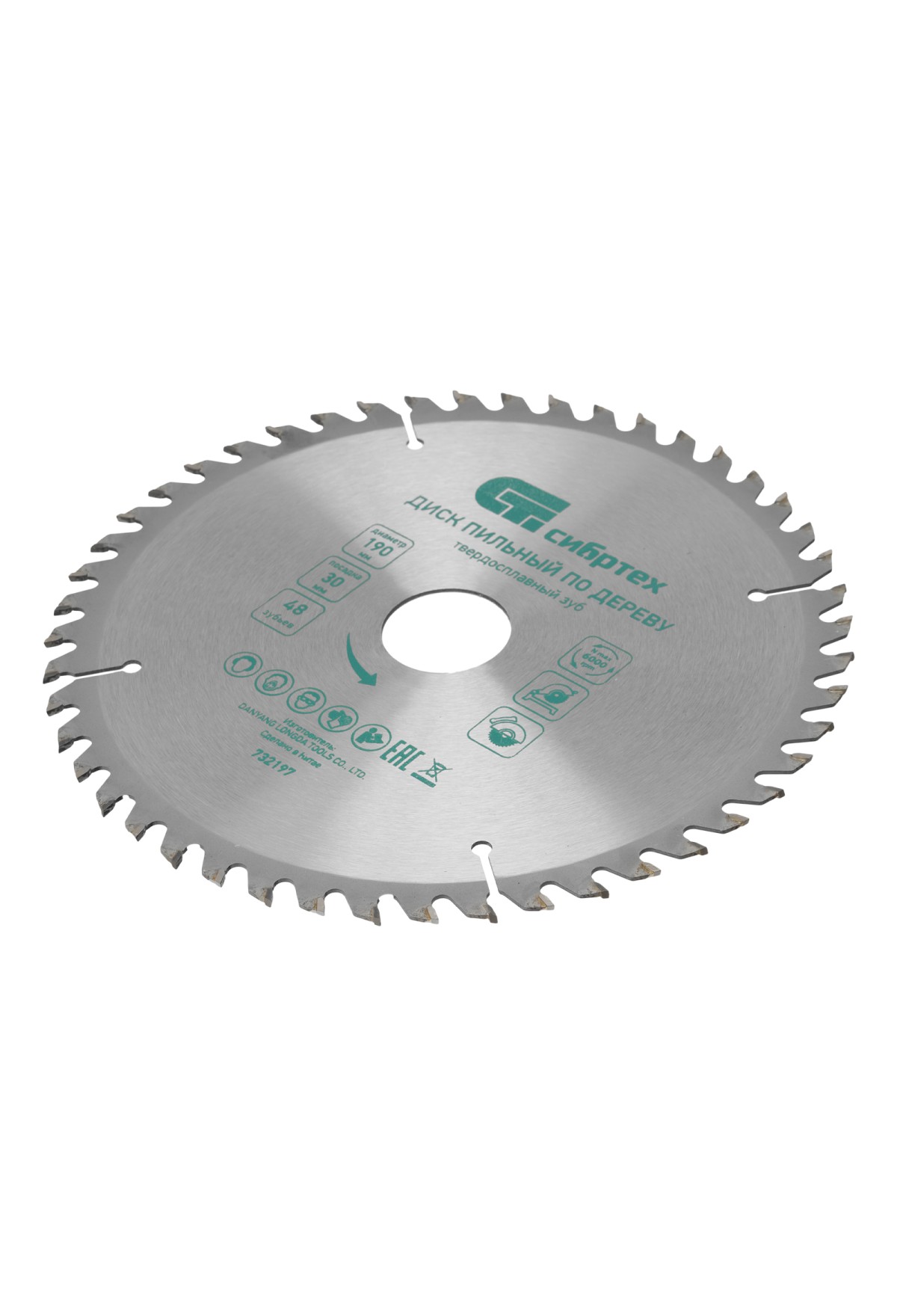 Технические характеристики Пильный диск по дереву, 190 х 30 мм, 48 зубьев Сибртех
