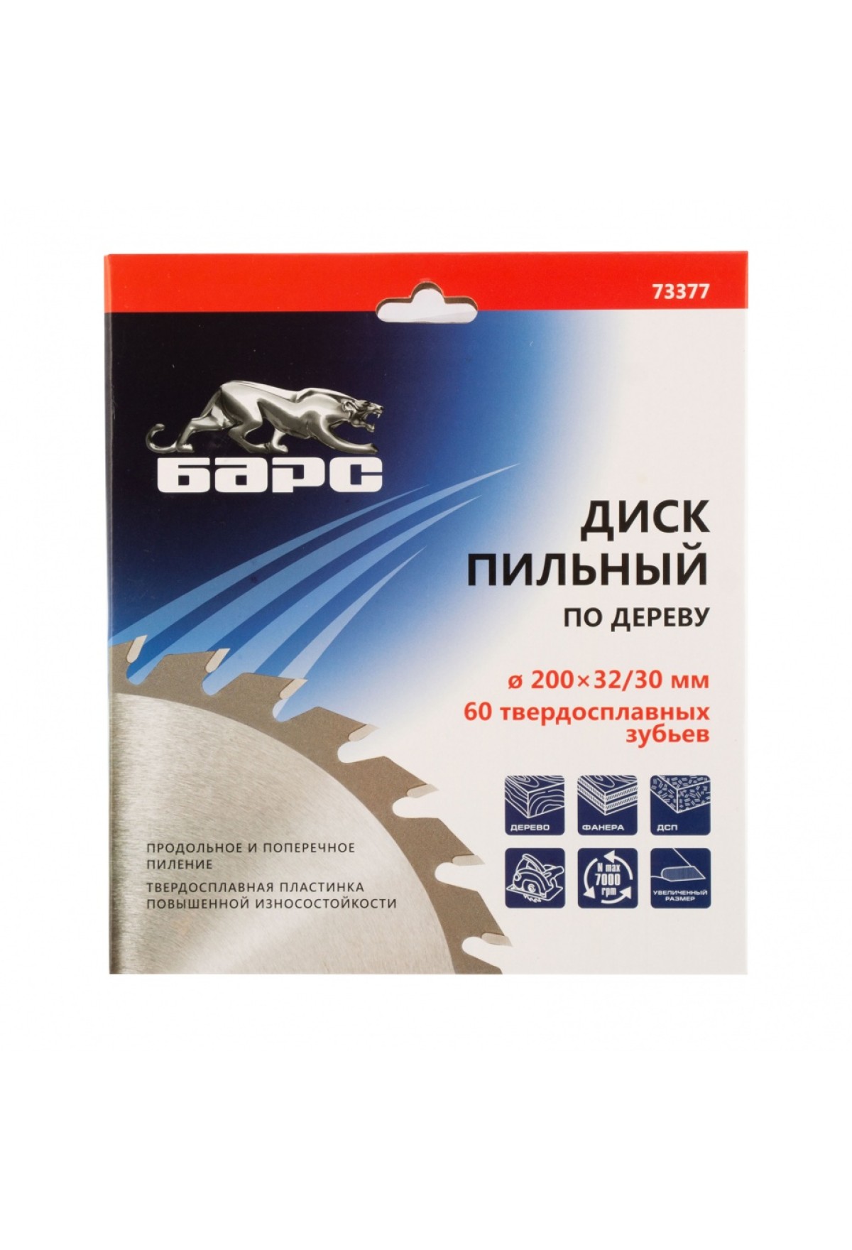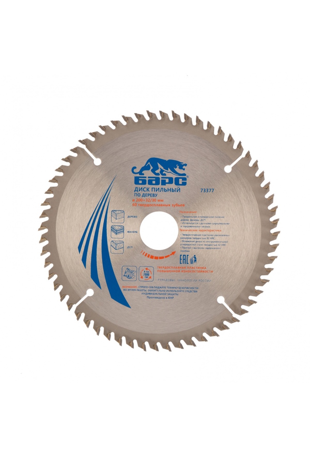 Технические характеристики Пильный диск по дереву 200 x 32/30 мм, 60 твердосплавных зубъев Барс