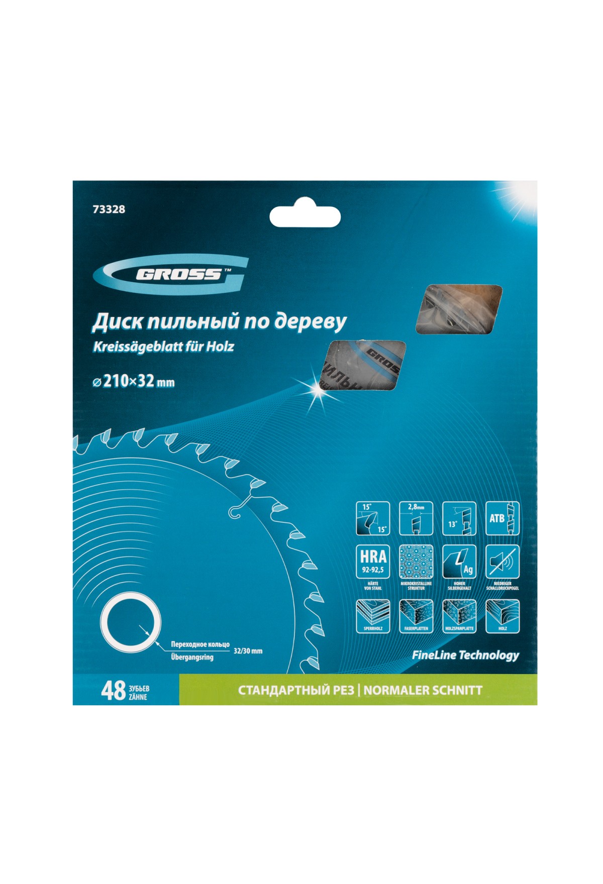 • Высокое качество работ — 48 мелких зубьев с режущими кромками, прошедшими многоступенчатую автоматическую заточку, обеспечивают точный и чистый рез.