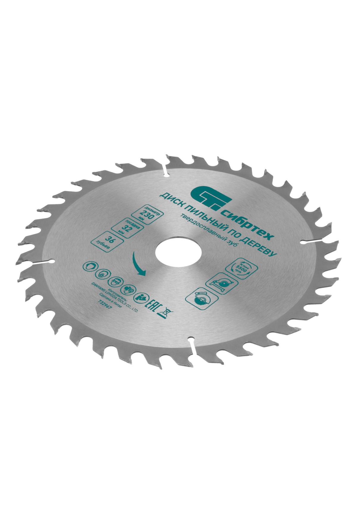 Технические характеристики Пильный диск по дереву, 230 х 32 мм, 36 зубьев, кольцо 30/32 Сибртех