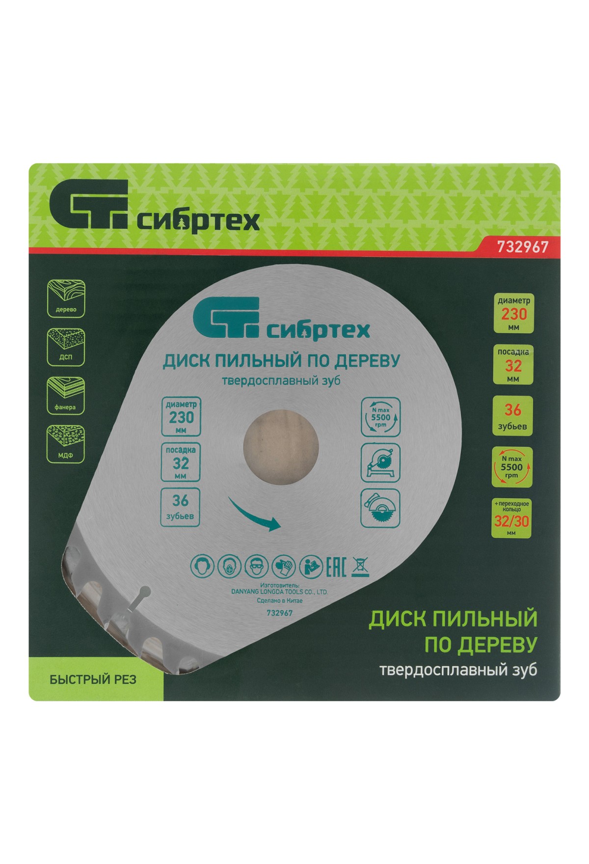 Пильный диск по дереву Сибртех 732967 диаметром 230 х 32 мм, с 36 зубьями и переходным кольцом 32/30, предназначен для быстрого распила древесины мягких и твердых пород, фанеры, ДСП, МДФ. Используется с циркулярными и торцовочными пилами с посадочным диаметром 32 мм. Переходное кольцо 32/30 позволяет при необходимости изменить размер посадки. Крупные зубья обеспечивают быстрый рез. Диск подходит для бытового применения.