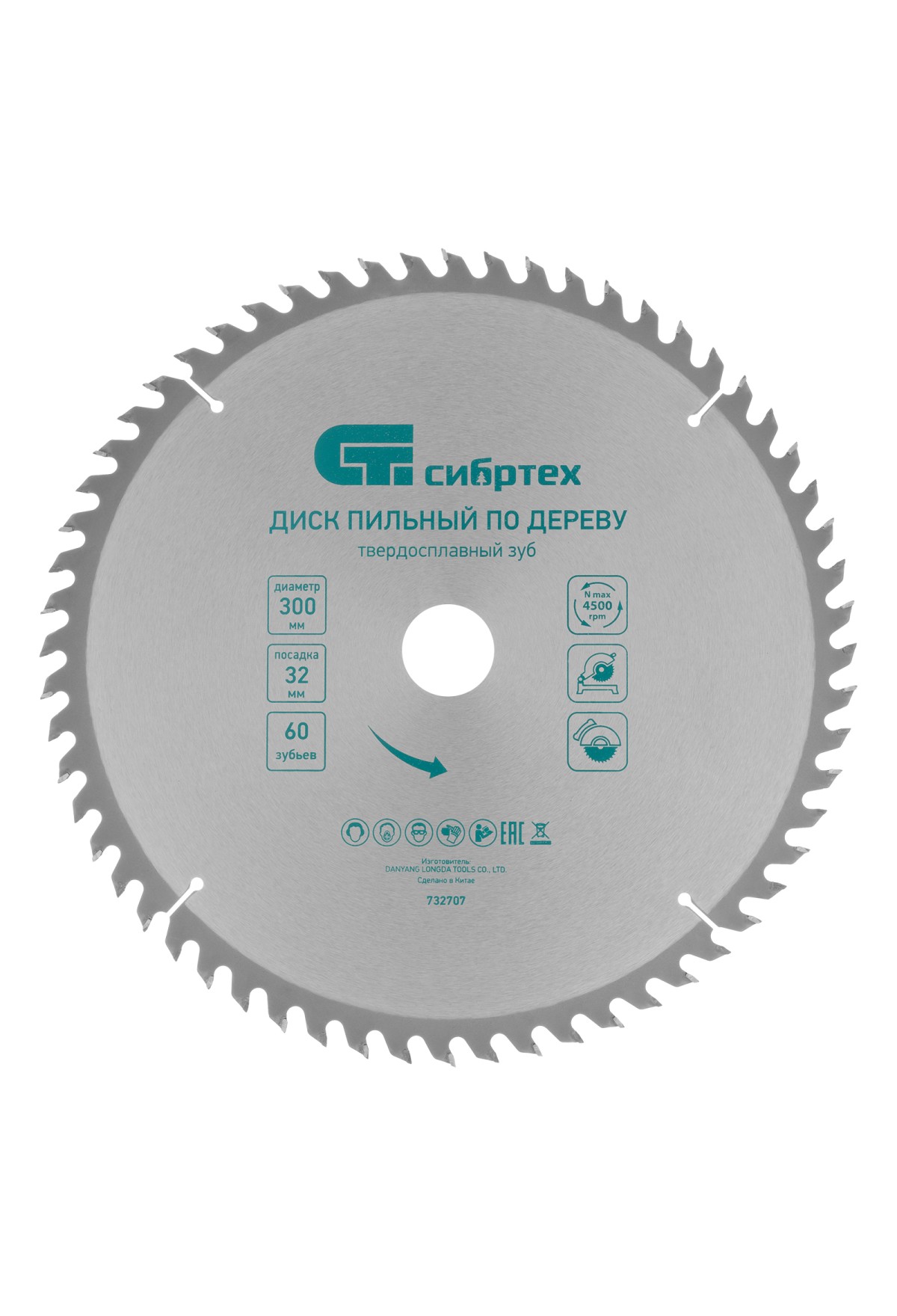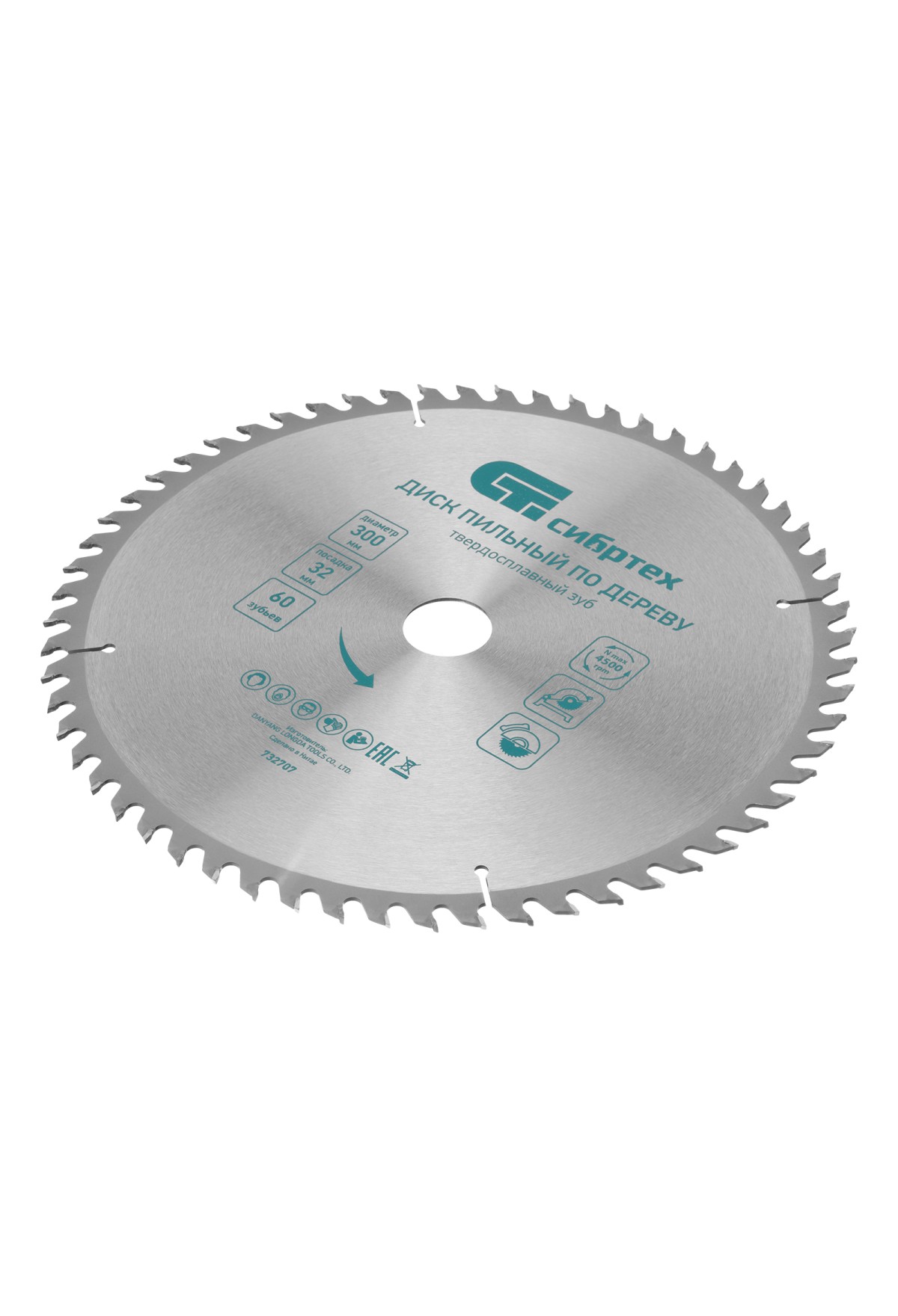 Технические характеристики Пильный диск по дереву, 300 х 32 мм, 60 зубьев Сибртех