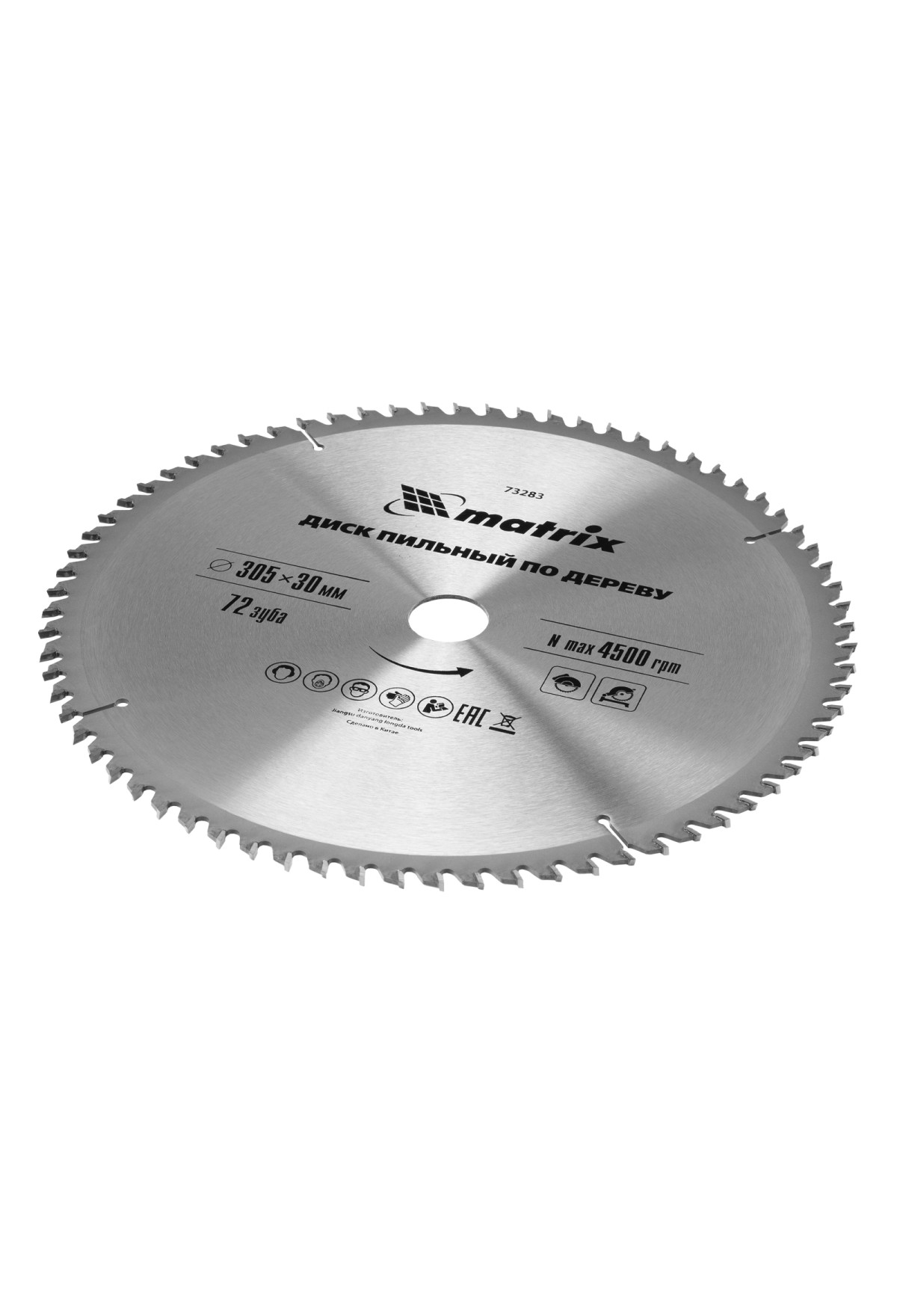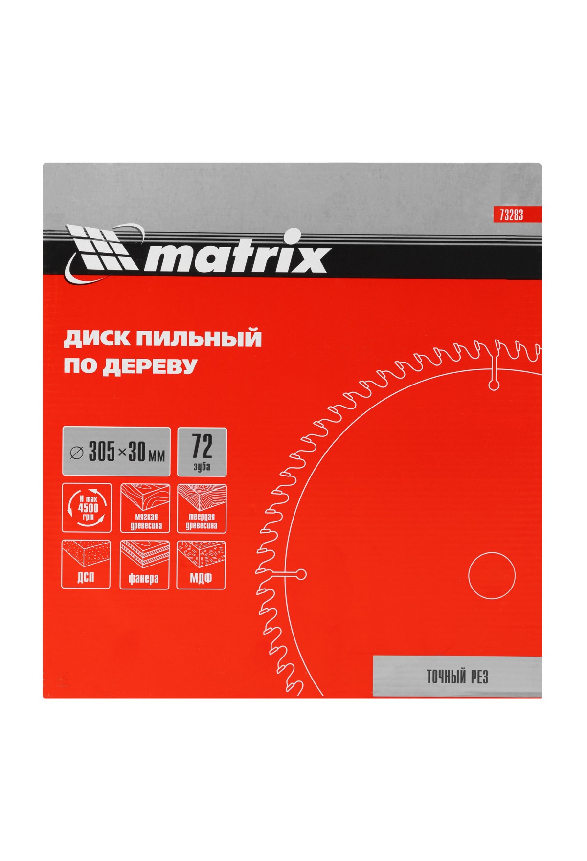 Пильный диск по дереву Matrix 73283 диаметром 305 х 30 мм, с 72 зубьями, — оснастка для циркулярных и торцовочных пил с соответствующим посадочным и внешним диаметром. Используется преимущественно для поперечного реза материалов из мягкой и твердой древесины, ДСП, ДВП, фанеры, столярных плит. Диск подходит для бытового и профессионального применения.