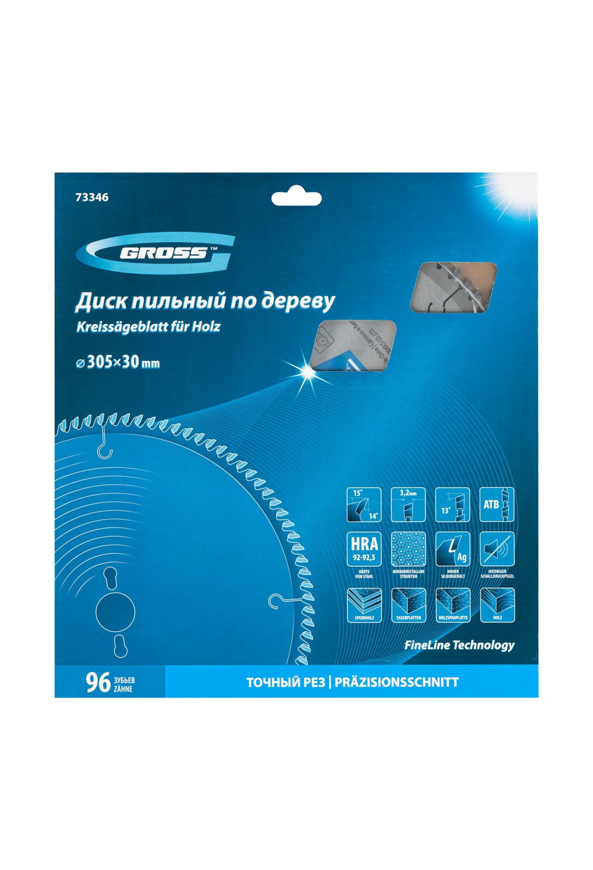 • Высокое качество работ — 96 мелких зубьев и режущие кромки, прошедшие многоступенчатую автоматическую заточку, обеспечивают точный и чистый рез материалов.