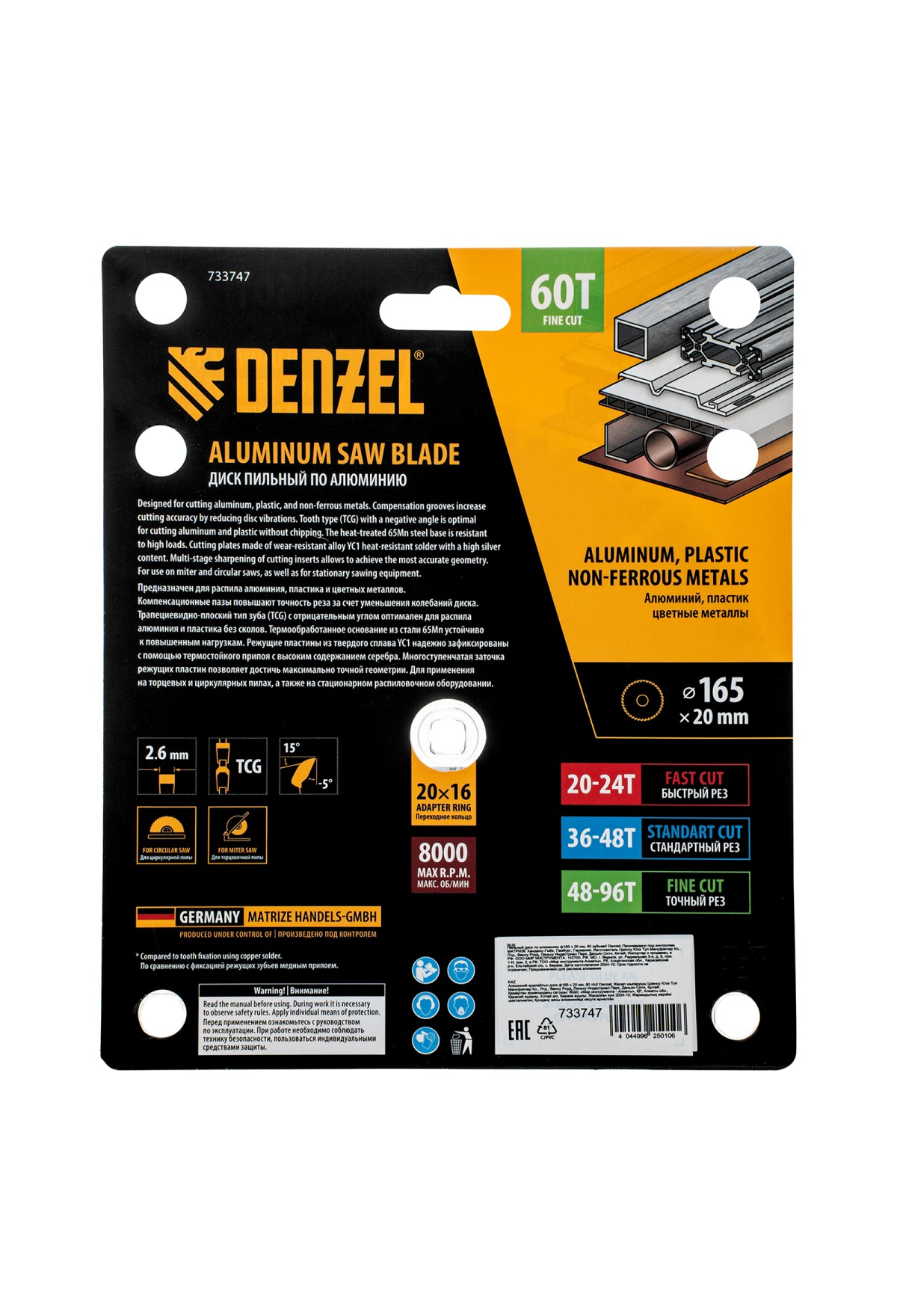 Пильный диск по алюминию ф165 х 20 мм, 60 зубьев Denzel