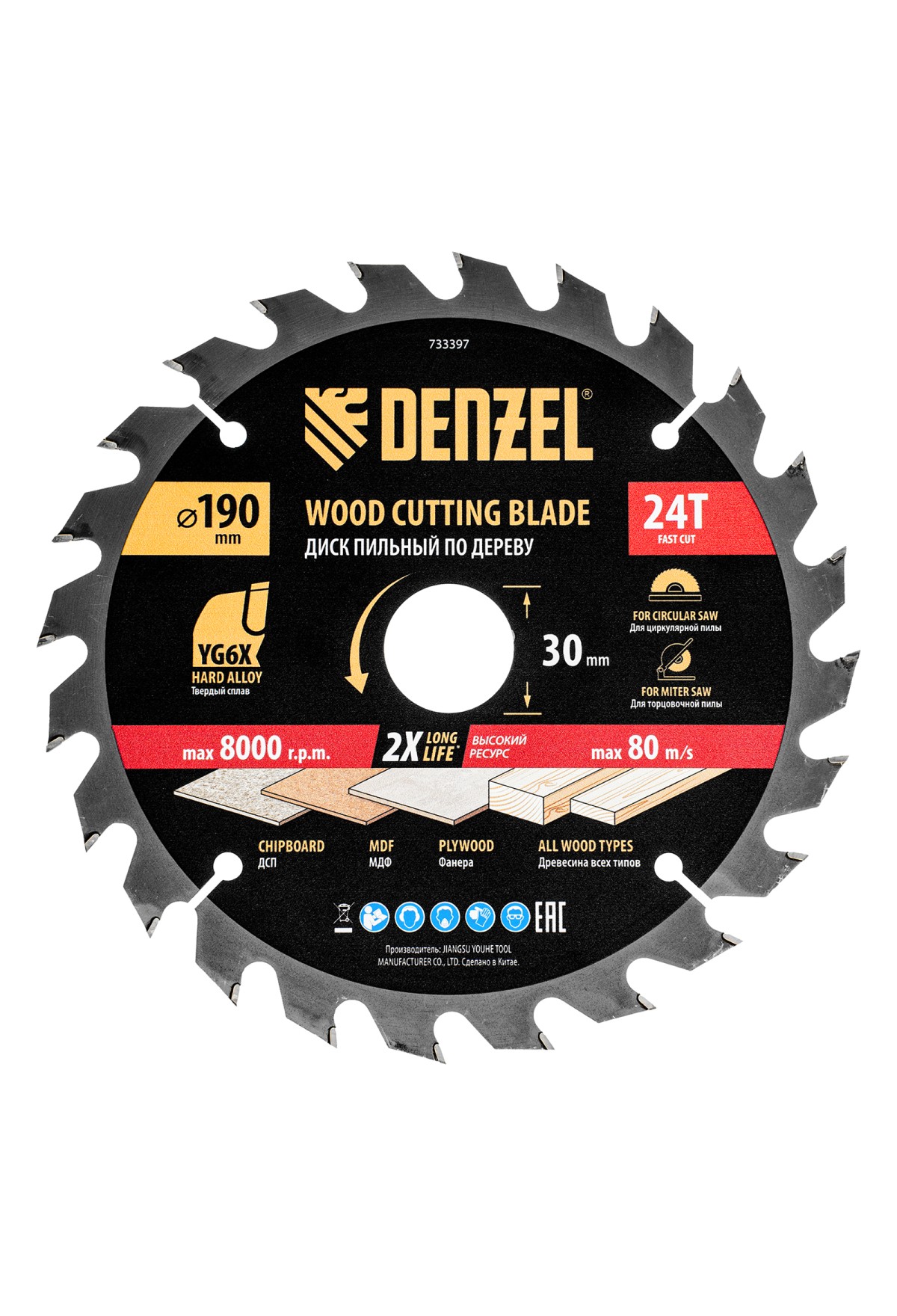 Пильный диск по дереву ф190 х 30 мм, 24 зубьев Denzel