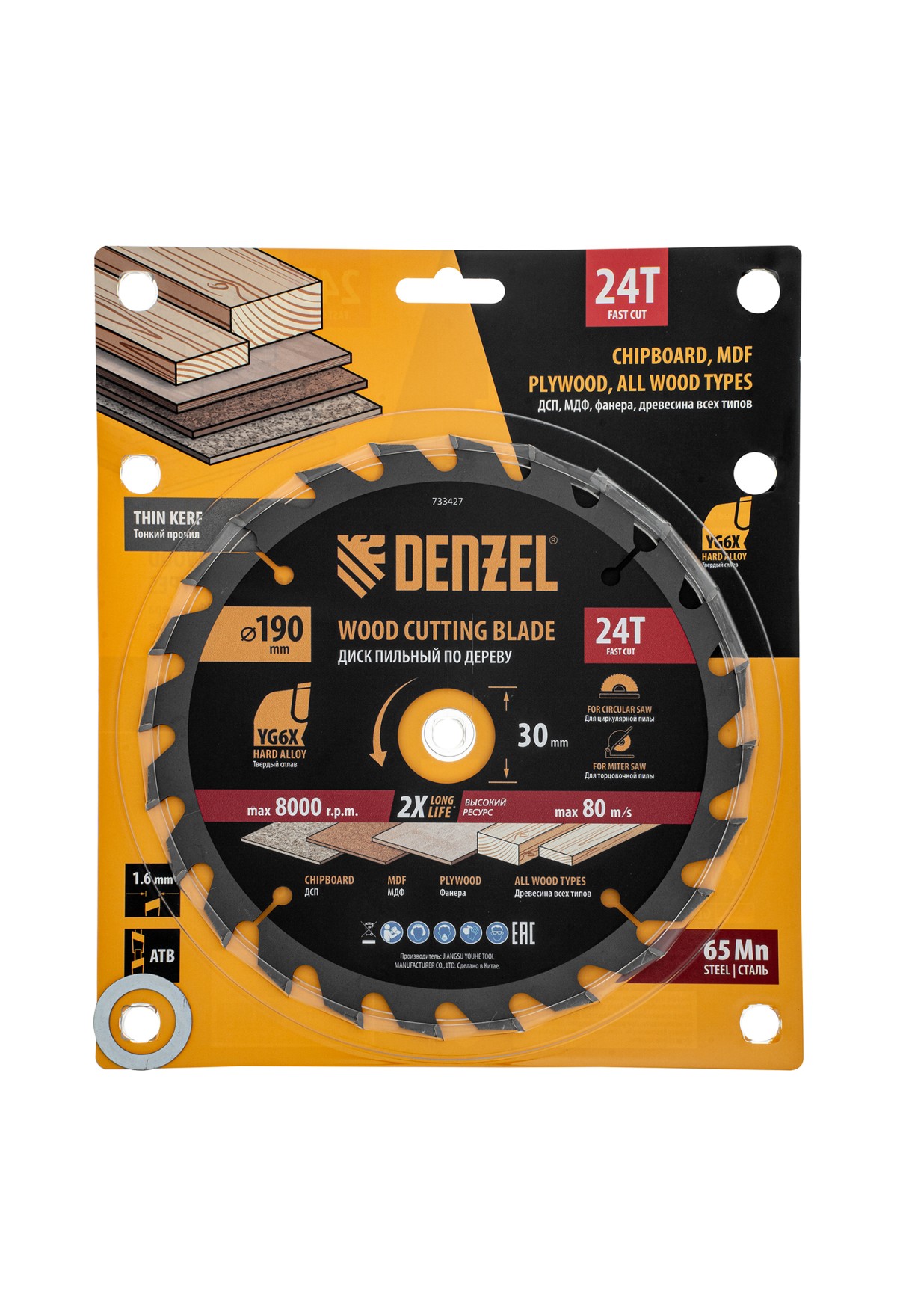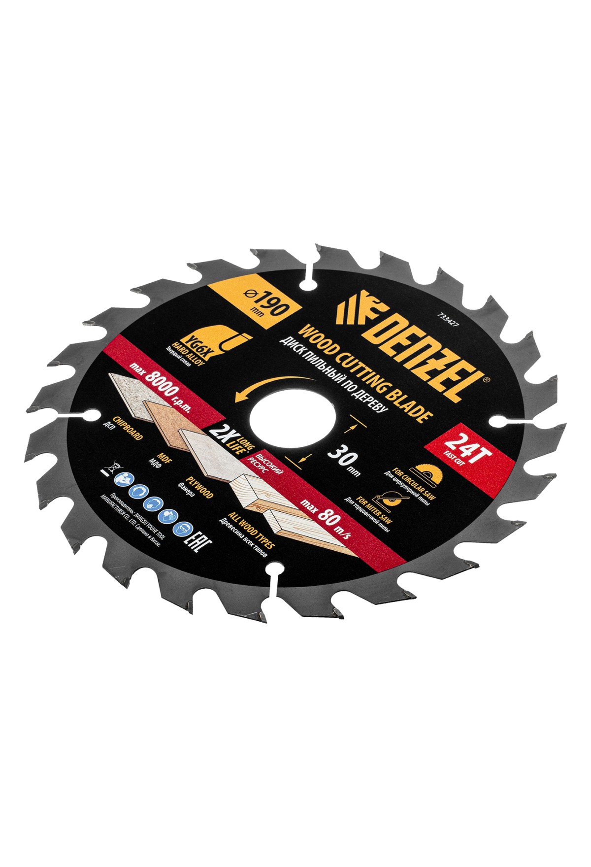 Пильный диск по дереву ф190 х 30 мм, 24 зубьев, тонкий Denzel